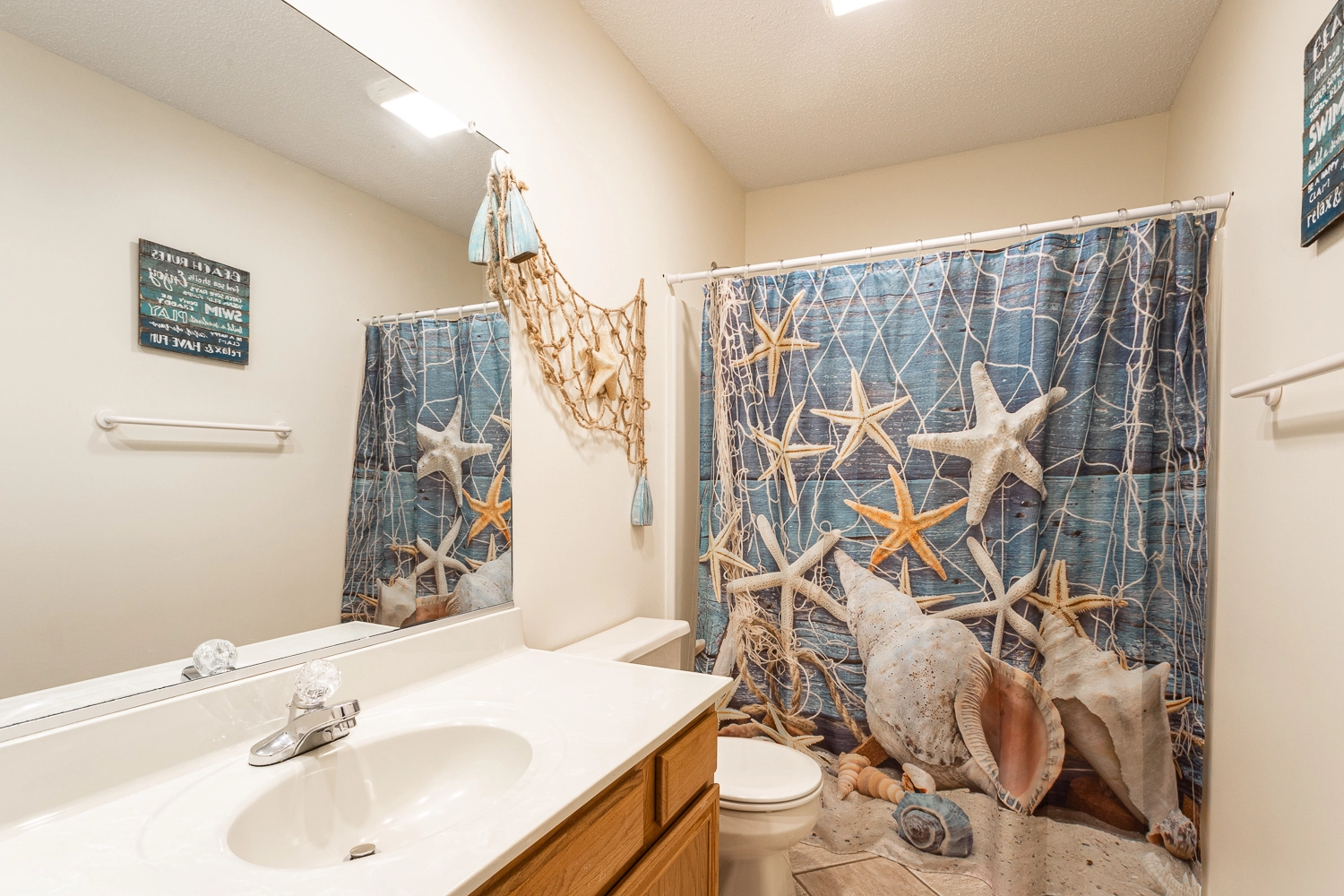 "Wonderfully, large house that is perfect for a large group. Was a little further from the beach than we were used to, but one of us ran shuttle service with all the beach equipment. Neighborhood was quiet and we enjoyed just relaxing at the house on most evenings. Pool was great. We didn't try the hot tub, but when pool service came by, it looked nice. Kitchen was well stocked. I didn't even realize it until the last day that there was a dishwasher downstairs and dishes in the bar area. The pool table and ping pong table kept the 20 yo busy. Owners have a very nice game, puzzles, and book closet. Nice touch."