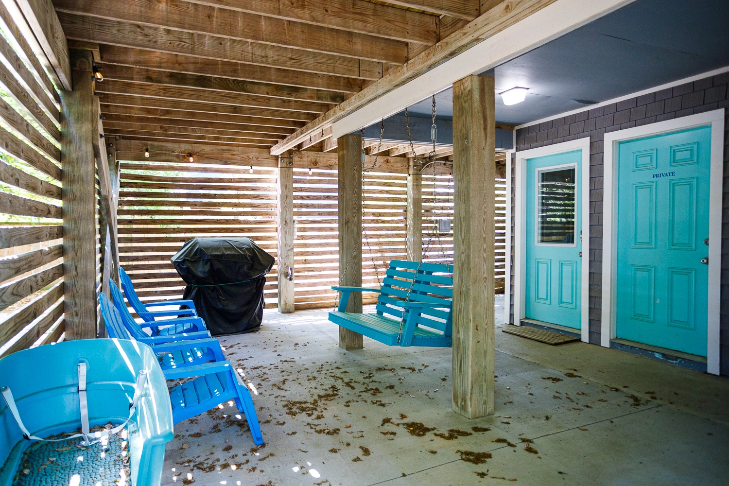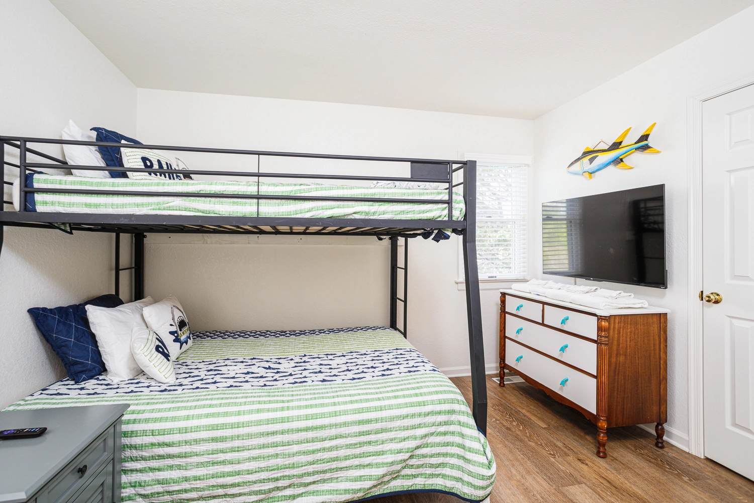 Bunk Set with Double over Queen, Shared bath with Room 1, Standing shower, Arcade game