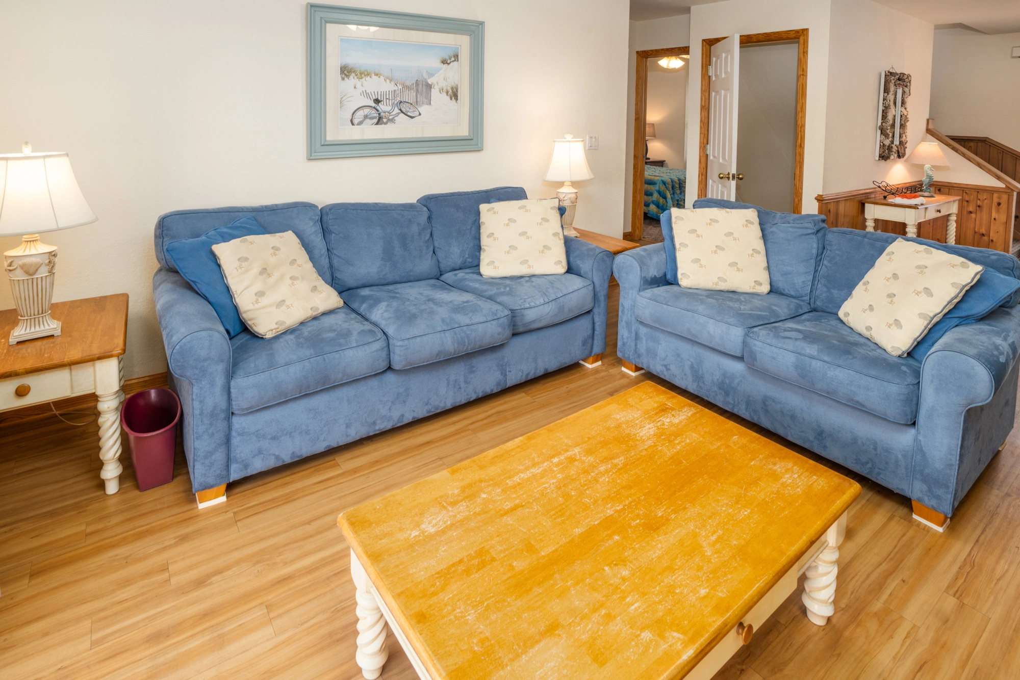 "we loved the upper level living area - fully stocked kitchen dishes etc, which is important to us, and two large group tables, as well as a nice sitting area (couches). the new outdoor decking and large supply of outdoor chairs was terrific"