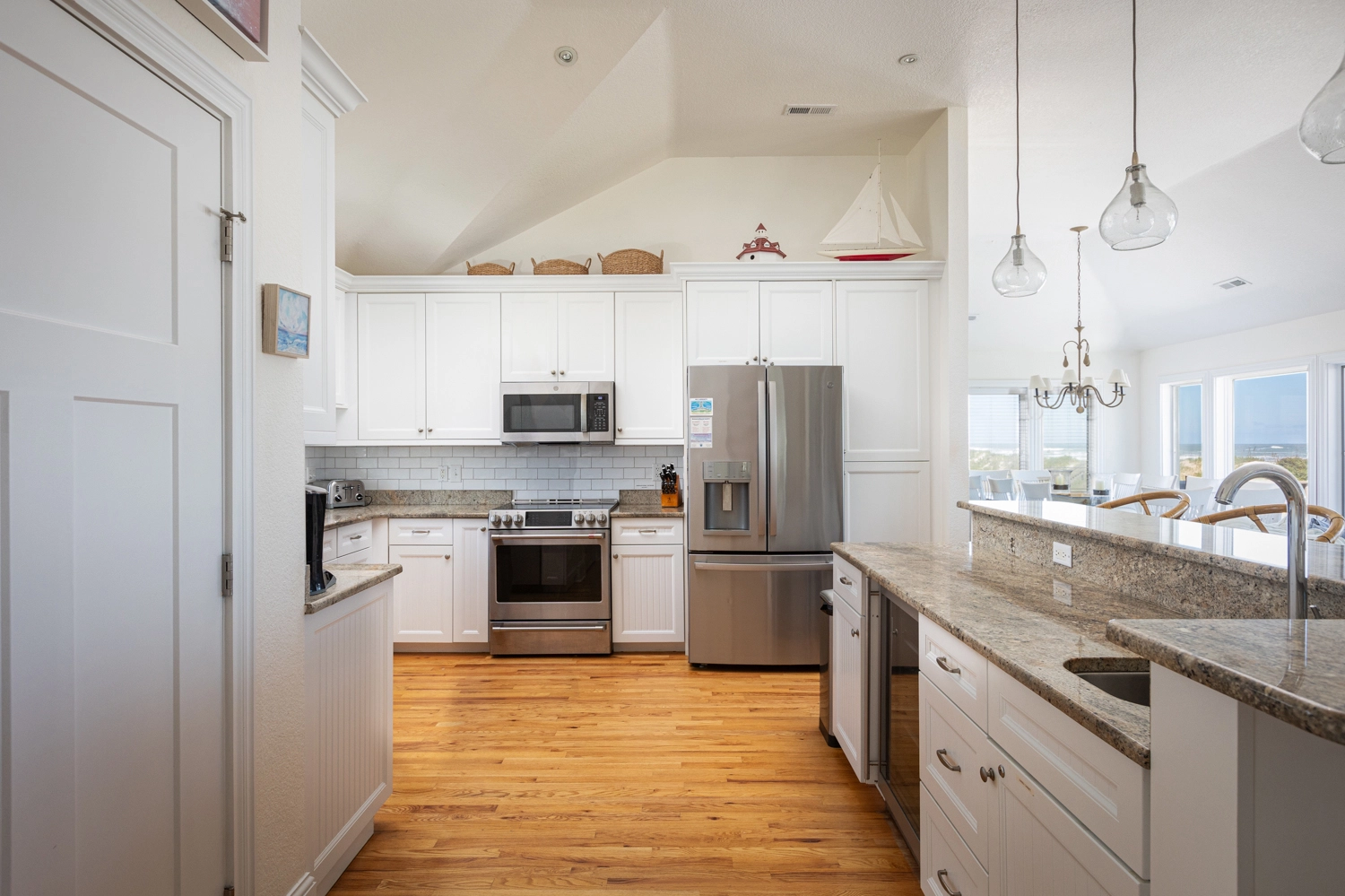 "Well equipped kitchen. Beautiful house. Very convenient to be close to the beach. Great house for our extended family. Grill needs cleaning. Kitchen layout is rather awkward. Beds were not made when we first got there. Had to contact Twiddy to get housekeeping team to finish set-up."