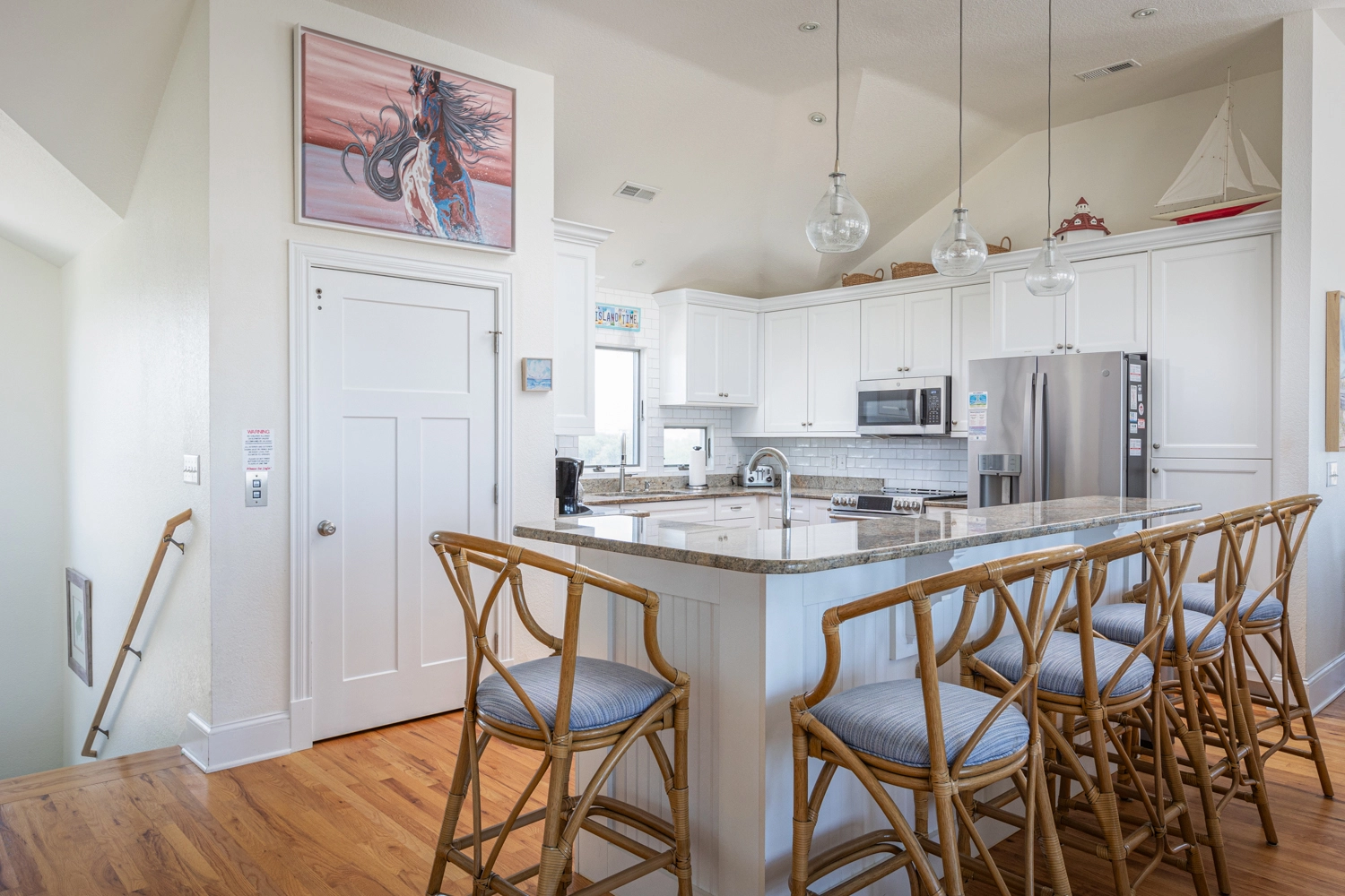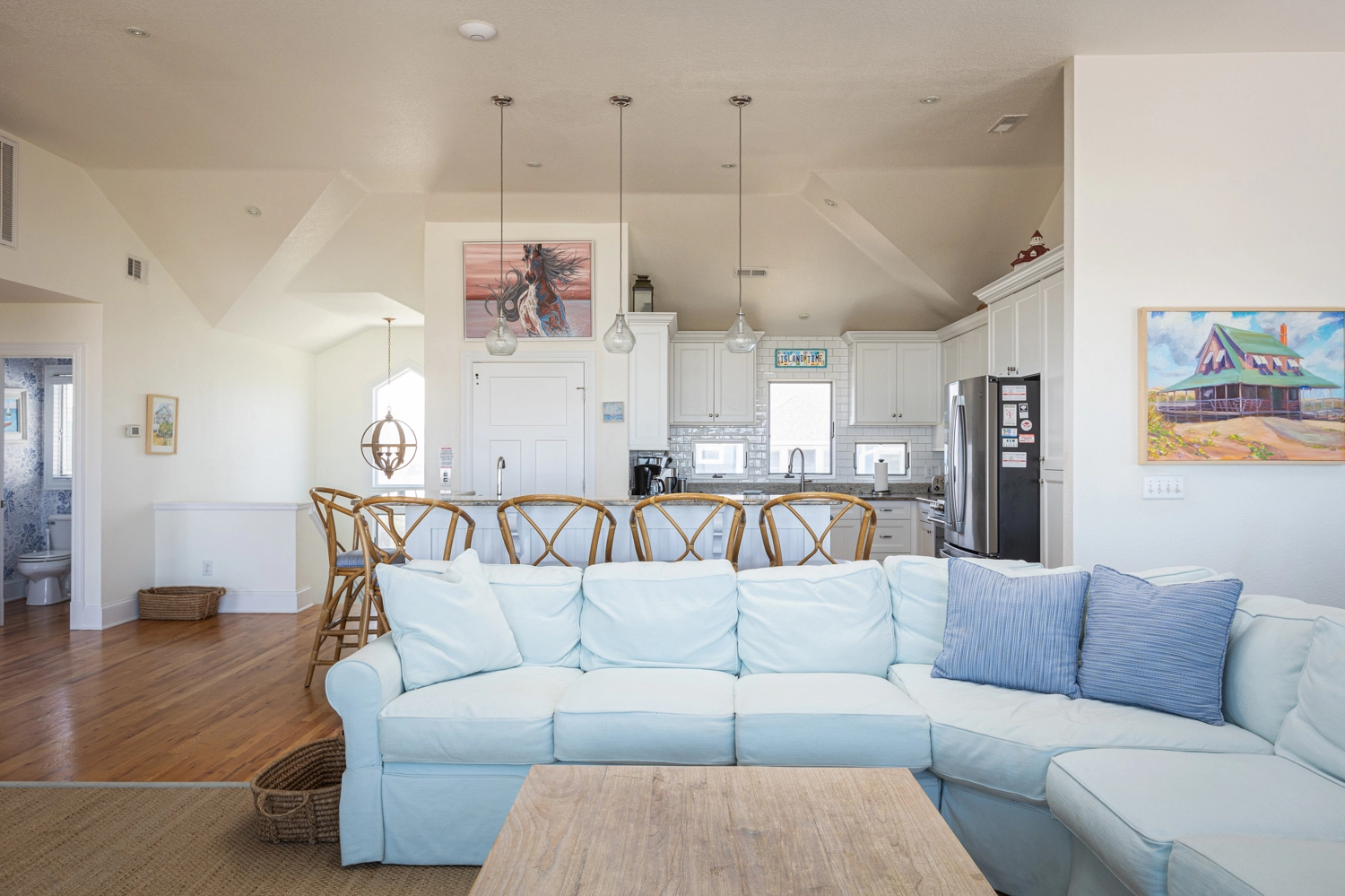 "We love this home! It is simply beautiful and in the perfect location with a walkway to the beach close by but not too close to be bothered by beach goers. Waking up in this home is breathtaking with all the windows giving you a great view to the morning sunrise! Highly recommend this home."