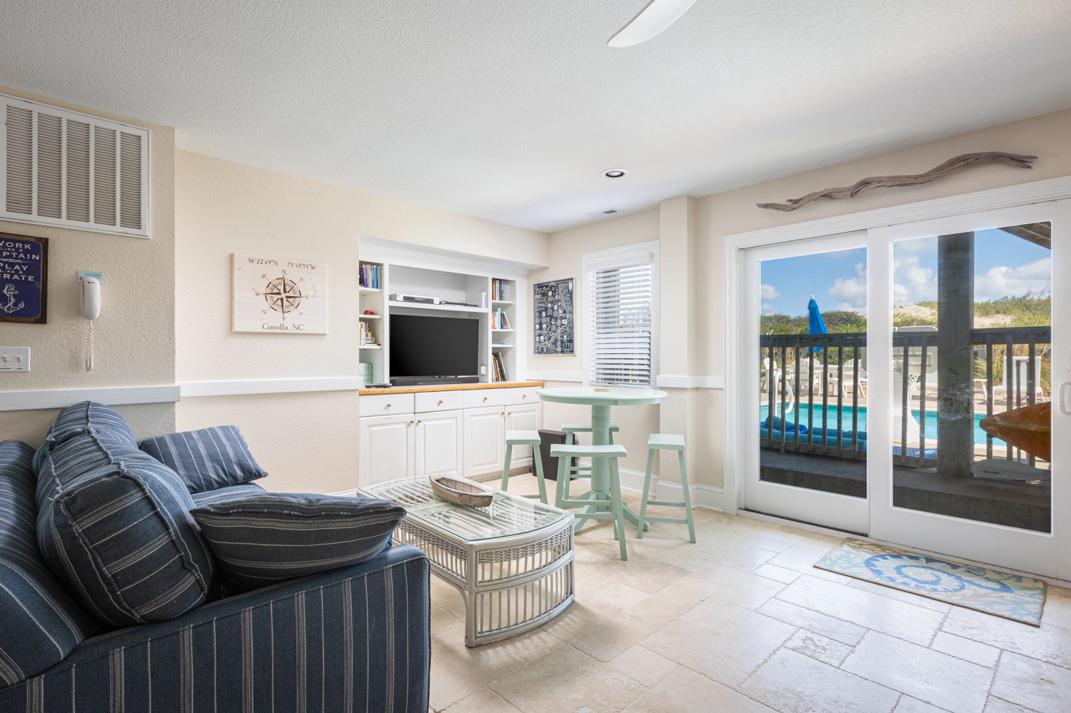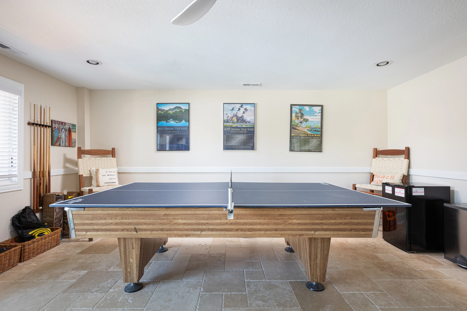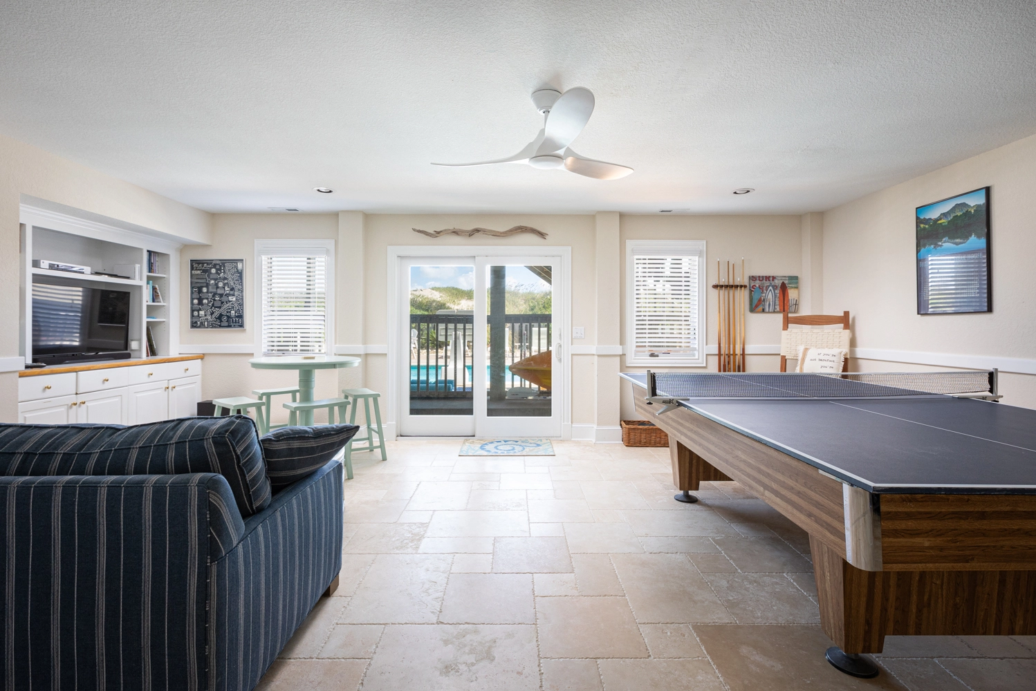 Rec room with pool table and ping pong table topper, beverage refrigerator, laundry; access to private pool, hot tub and half bathroom (accessible from the outside only).