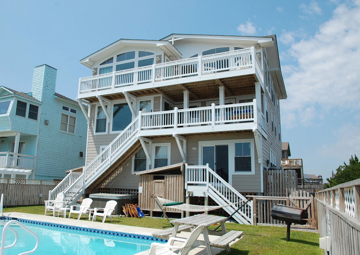 "The bedrooms and bathrooms are laid out to allow maximum privacy while the open spaces (living/dining/kitchen and game room) allow for family gatherings. The theater room is fun. The pool and hot tub araa are nicely landscaped and accessible. The decks are great for viewing the ocean (and spotting dolphins which we saw several times during our month stay)."