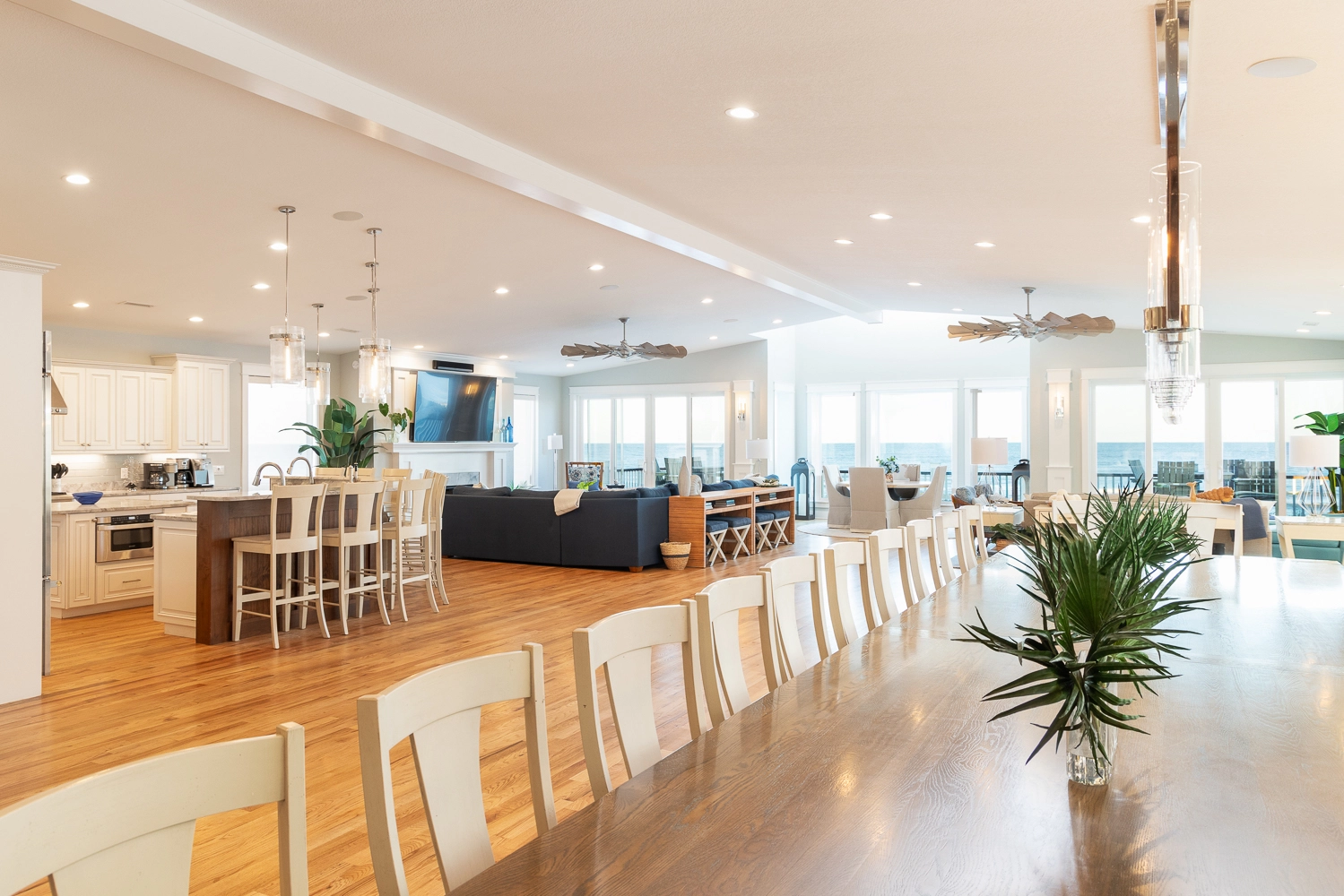 "This was our second year renting this house. The commercial kitchen, 22 person dining room table, large top floor open gathering space with pockets of quiet and comfortable space for family members to talk and still be able to see and engage everyone is what makes this house special."