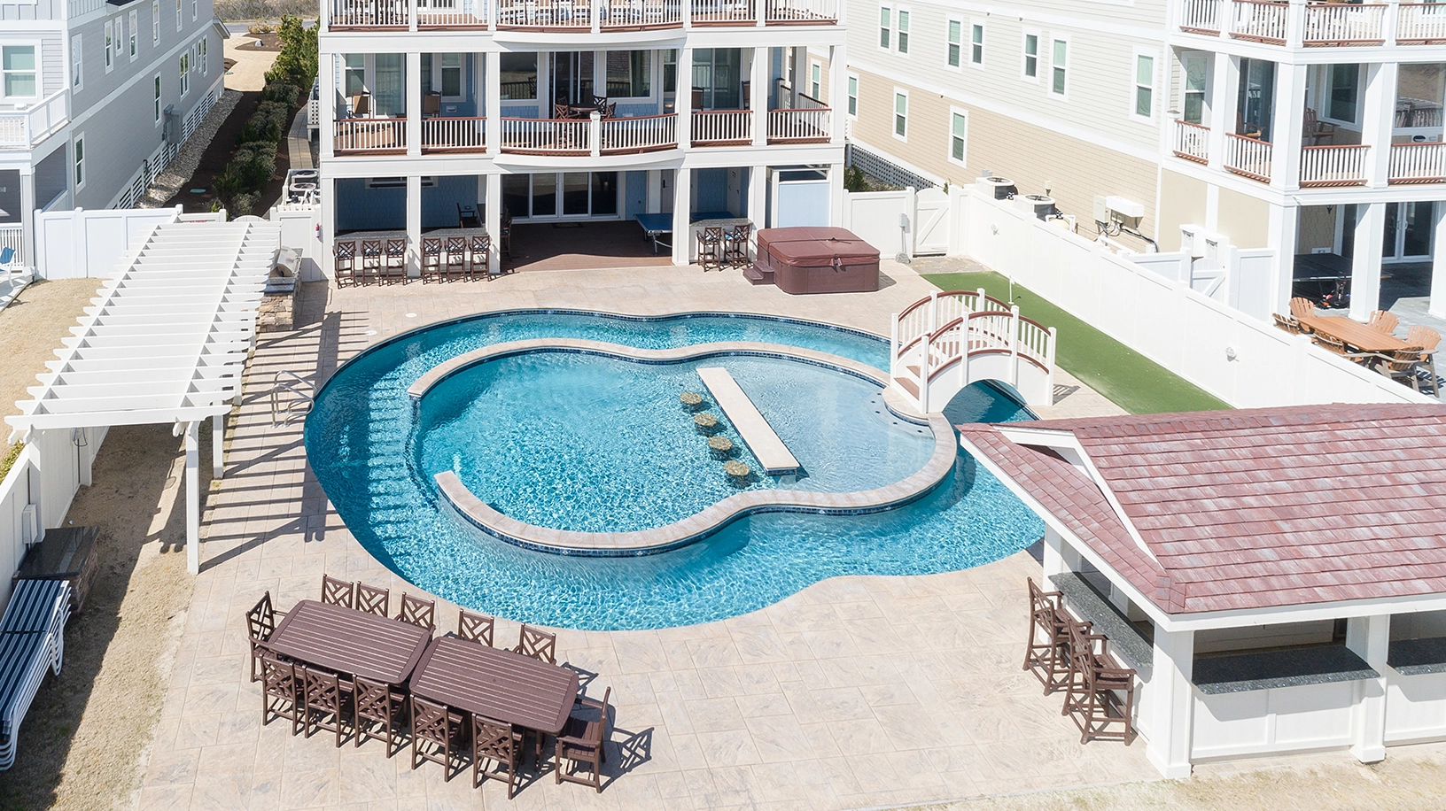 "loved the amount of space and the ability to accommodate a large group in many different areas. Loved the theater room for sports and movies and the upstairs pub for Monday night football! Everyone enjoyed the pool and hot tub and of course the beautiful beach just steps away! The large kitchen with secondary prep kitchen was also great for cooking meals for large group."