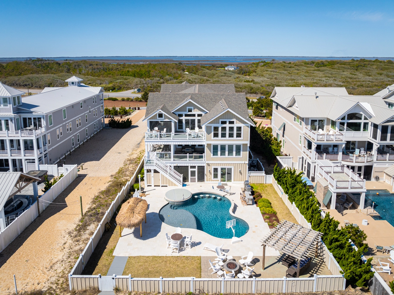 Poolside tiki hut, elevator, outdoor ping pong, fire pit, 2026 beach cabana service provided from April 26 to September 25 only (provides morning set-up and afternoon take-down of two umbrellas and six beach chairs on the beach).
