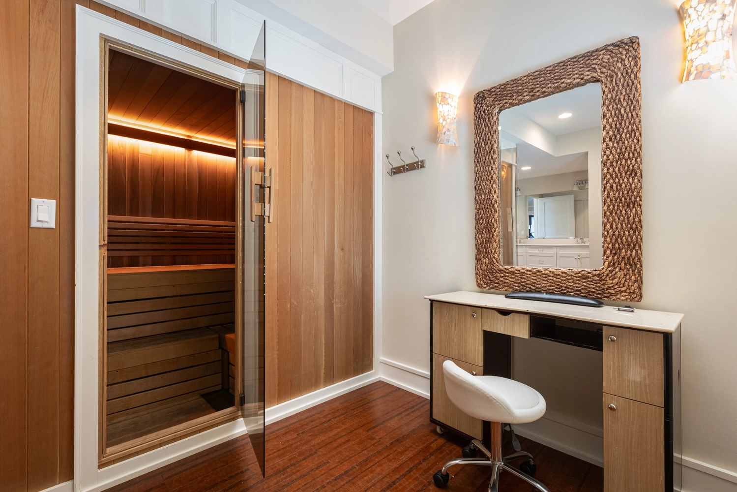 Full bath, Standing shower, Sauna, Pedicure chair, Massage table