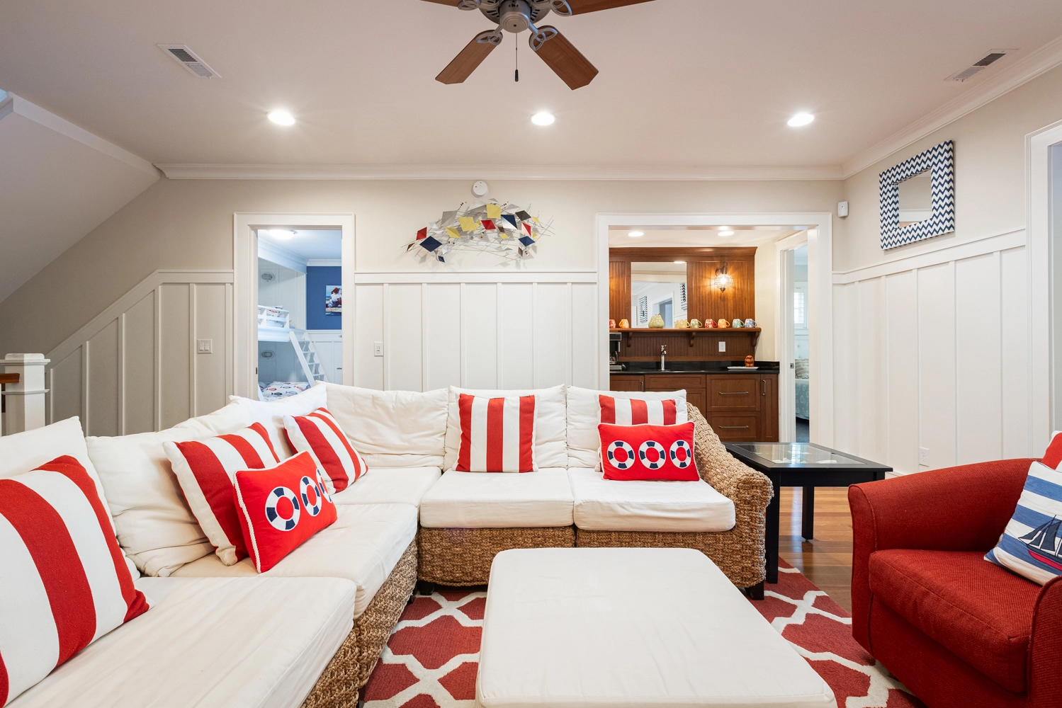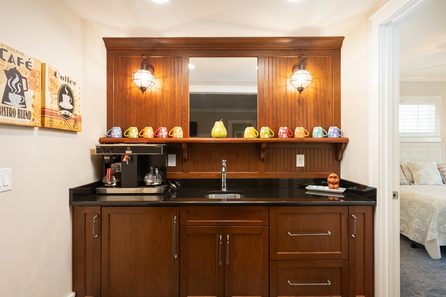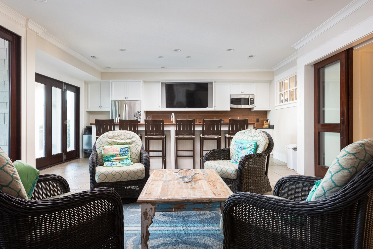 Sitting area with wet bar.