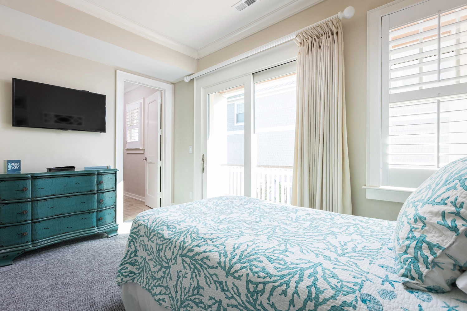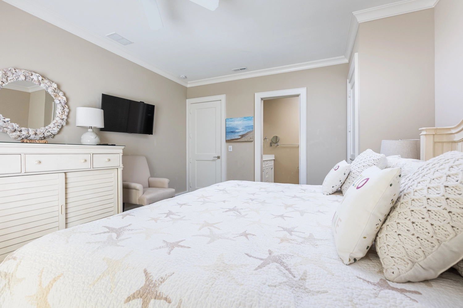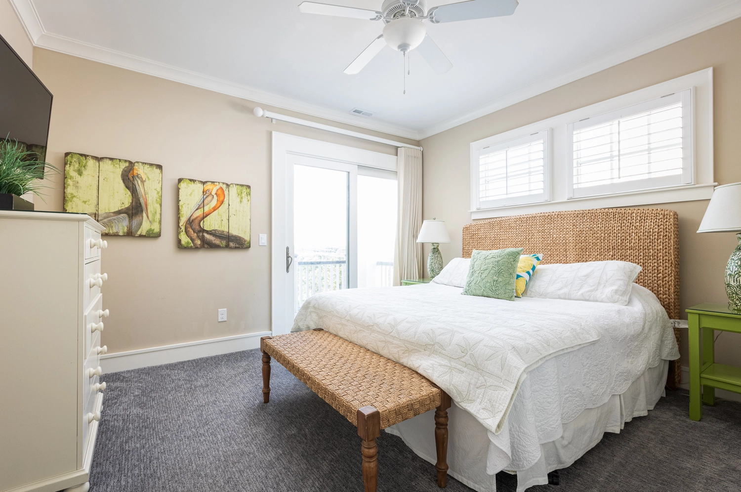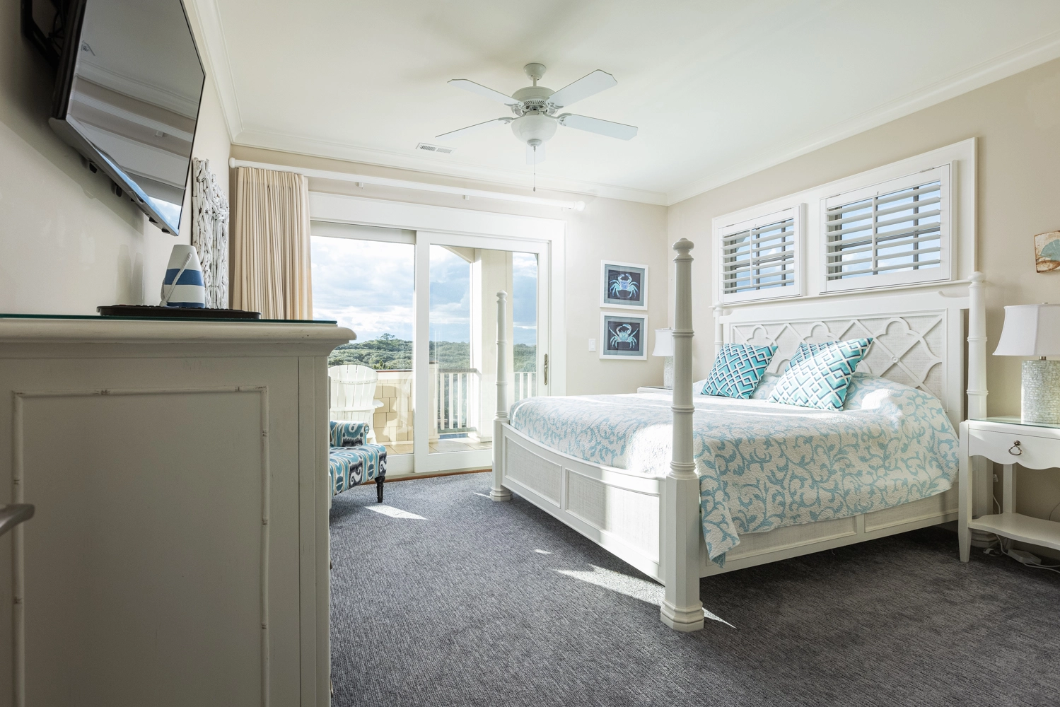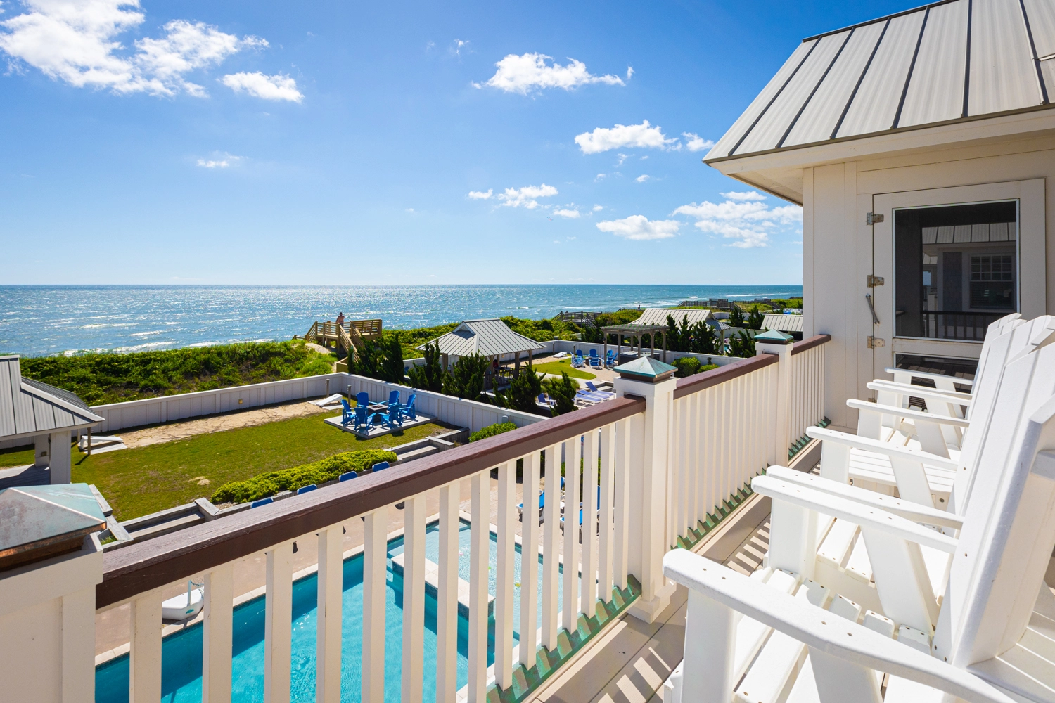 Oceanside, King, Two full baths, Standing showers, Deck access