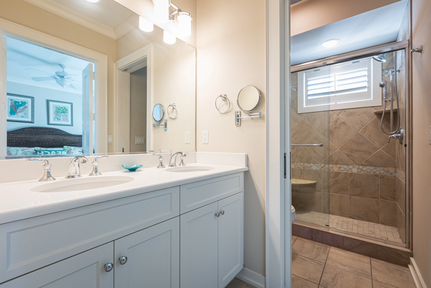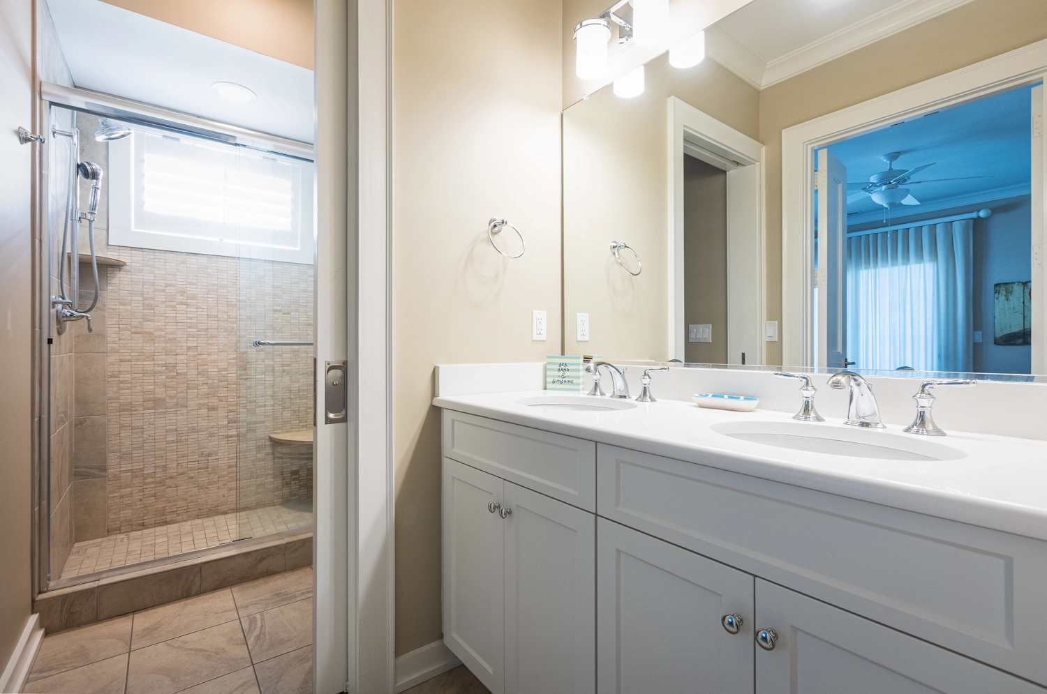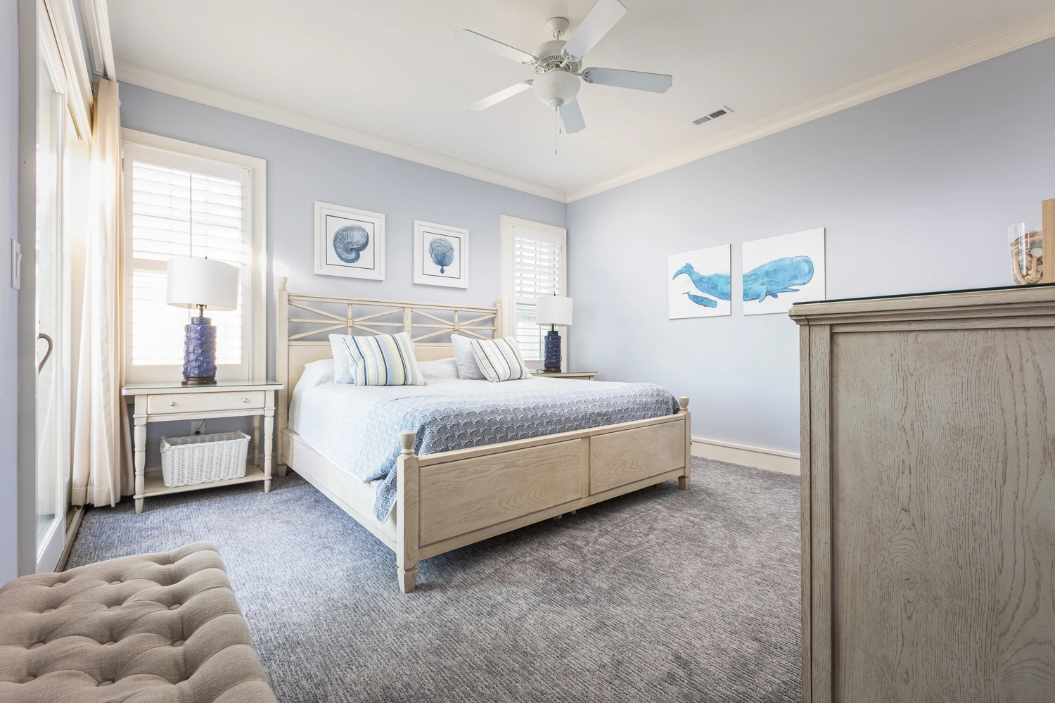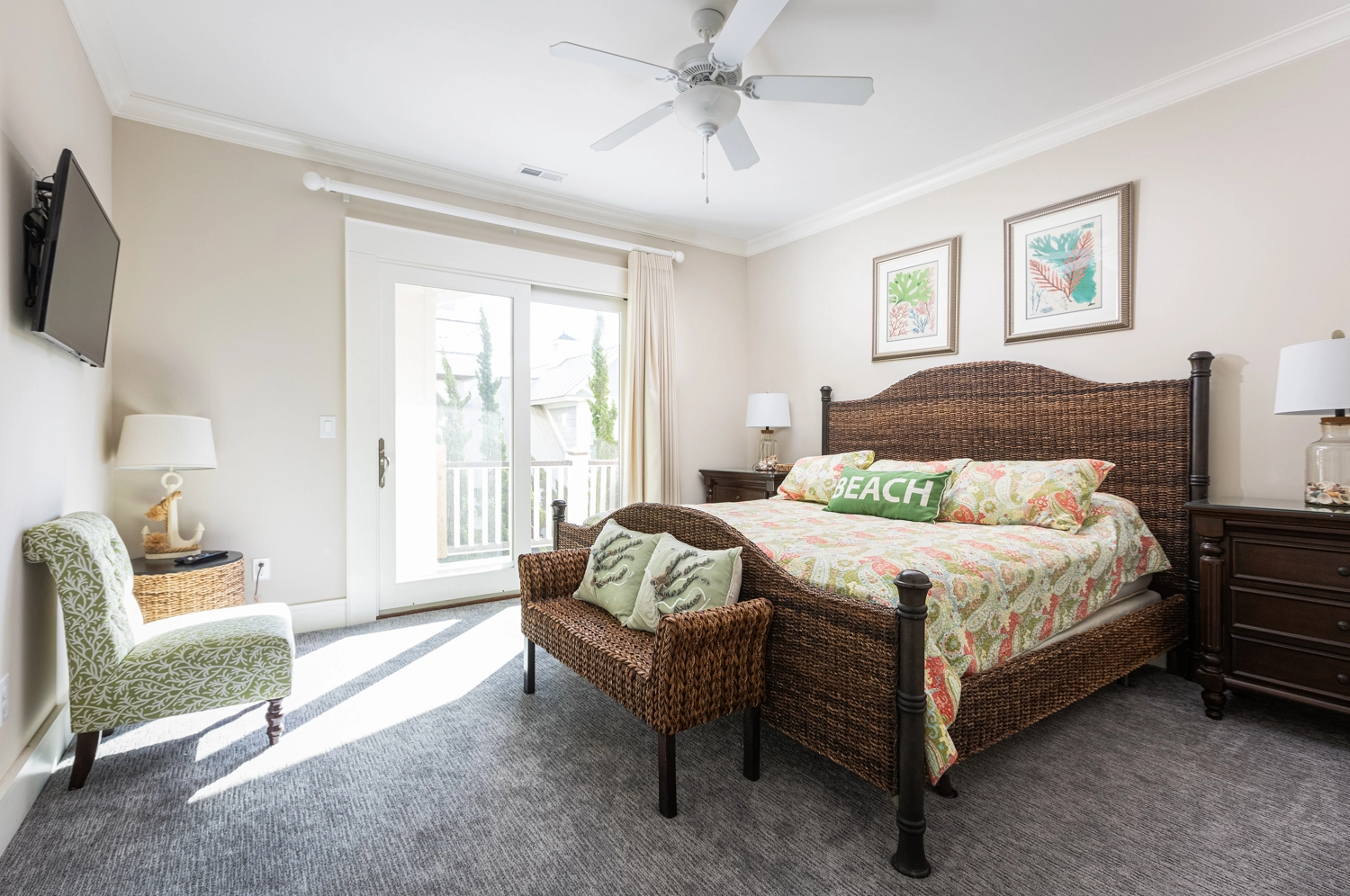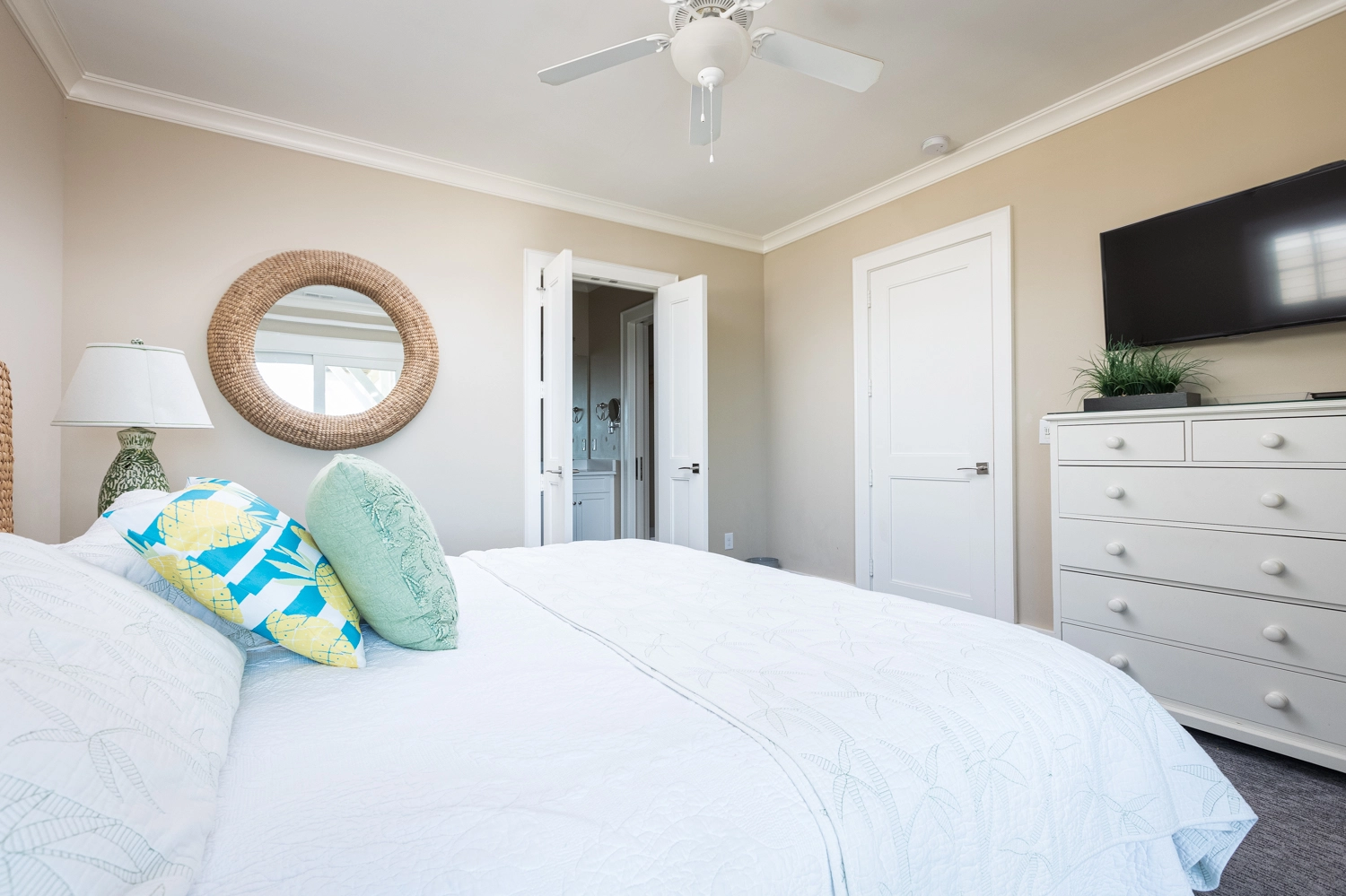 Oceanside, King, Two full baths, Standing showers, Deck access