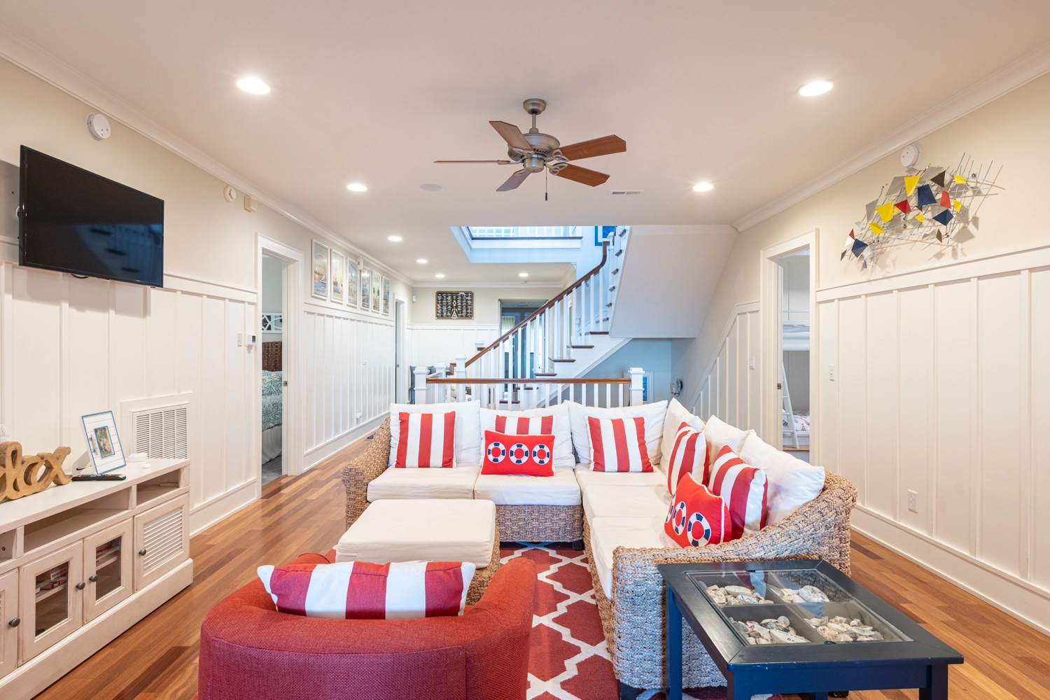 "This is an absolutely beautiful home with all the amenities. It has an awesome coastal farmhouse vibe which is my favorite style of home. It's a huge place, but the way it is laid out it has a very warm and cozy feel to it. We will be back again next year. I can't wait!"