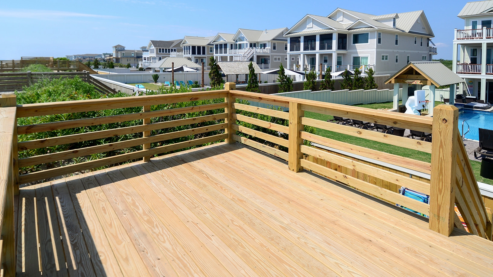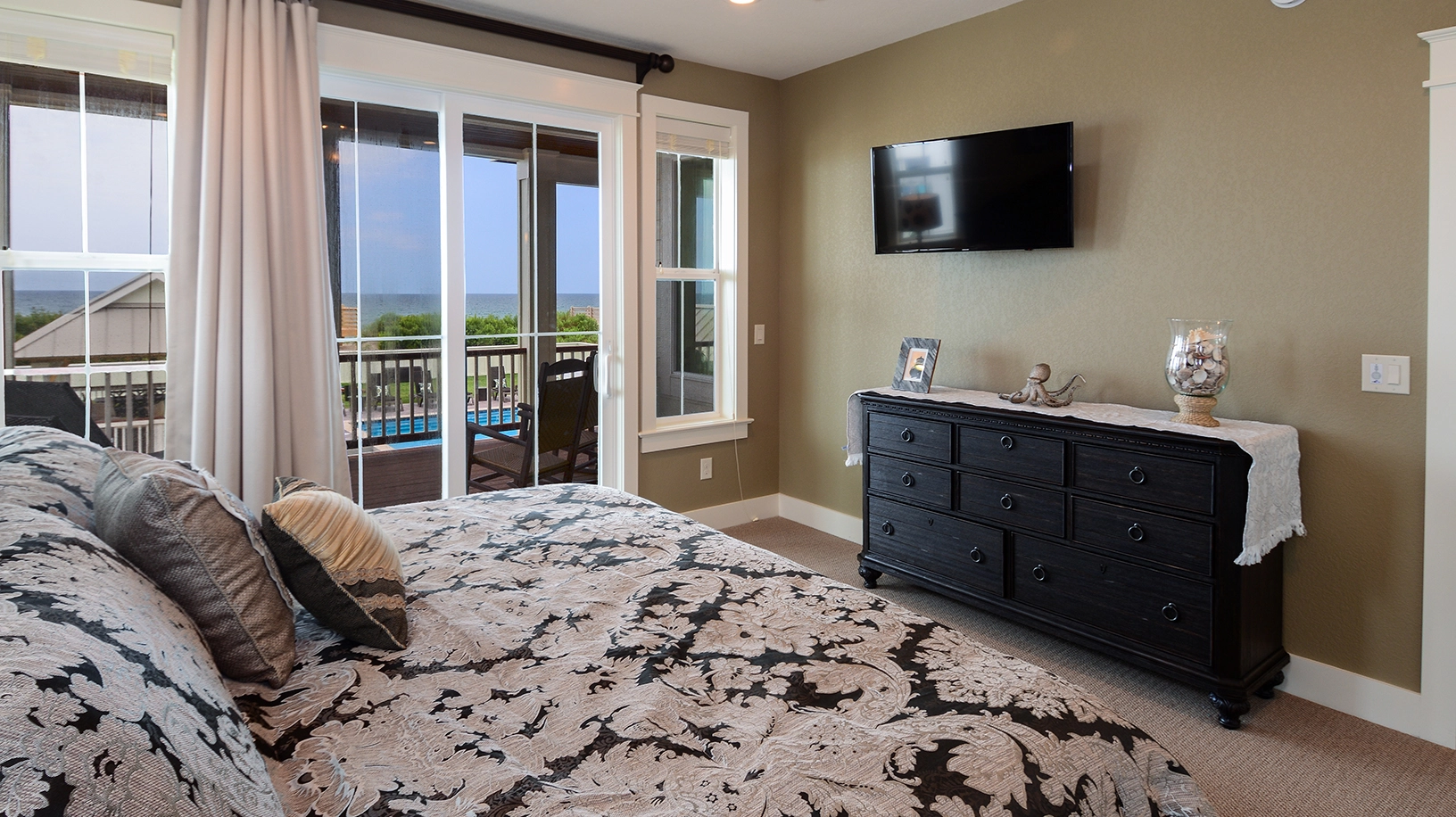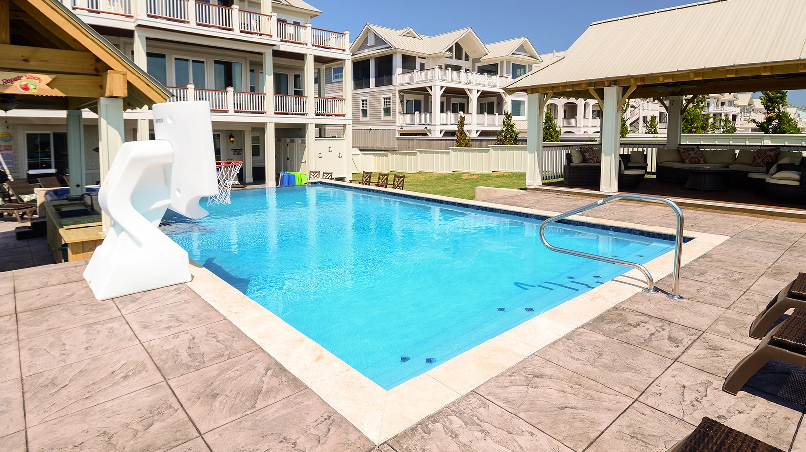 Private pool with swim-up bar; kiddie pool; poolside hot tub; two poolside showers with built-in lockers and changing rooms; covered tiki bar with TV; private walkway to the beach with dune deck; reduced fees and preferred tee times at the Kilmarlic Golf Club. 2026 Beach cabana service provided from April 27 to September 26, only (provides morning set-up and afternoon take-down of two umbrellas and six beach chairs on the beach).