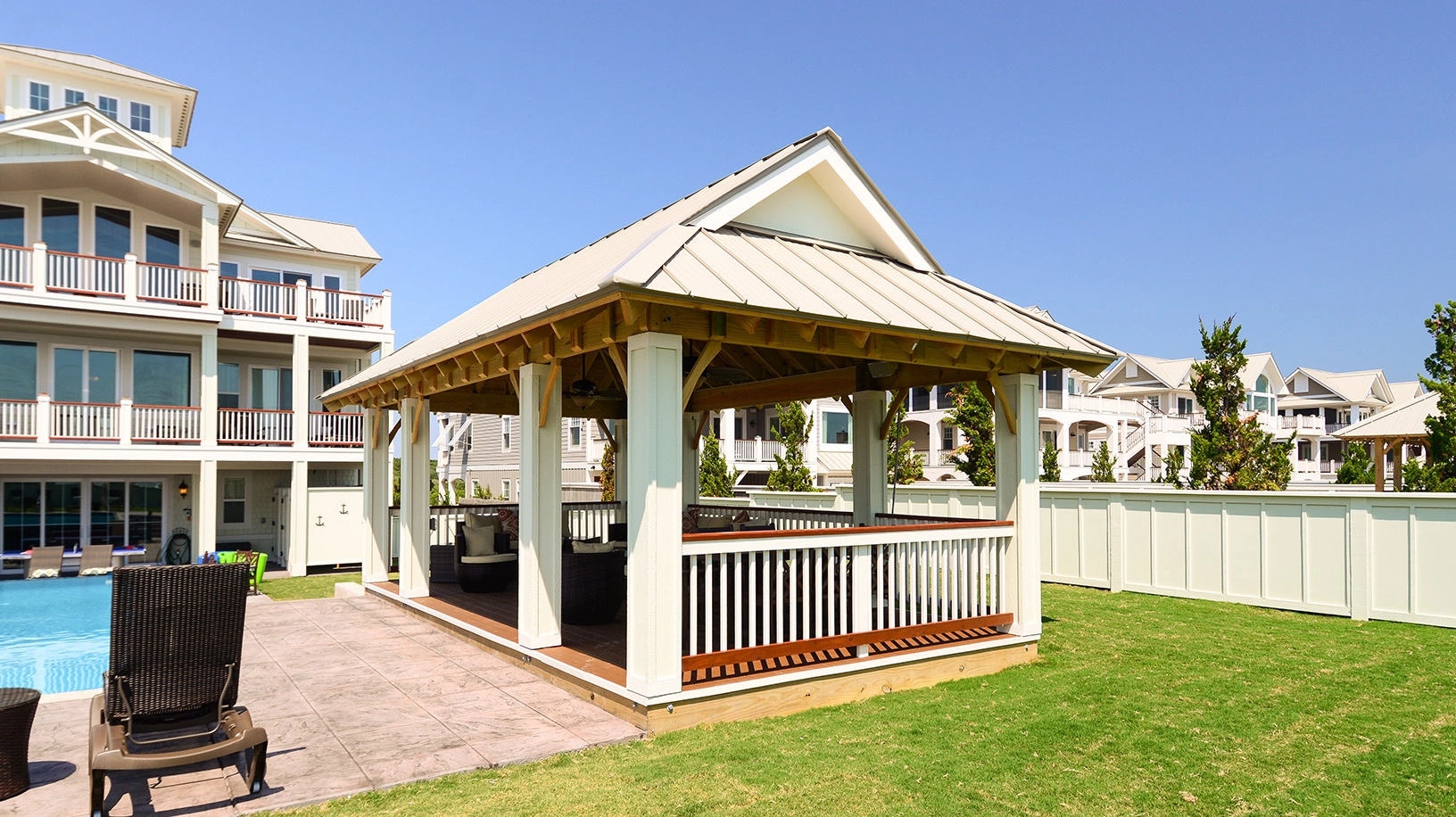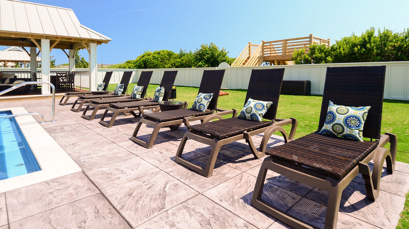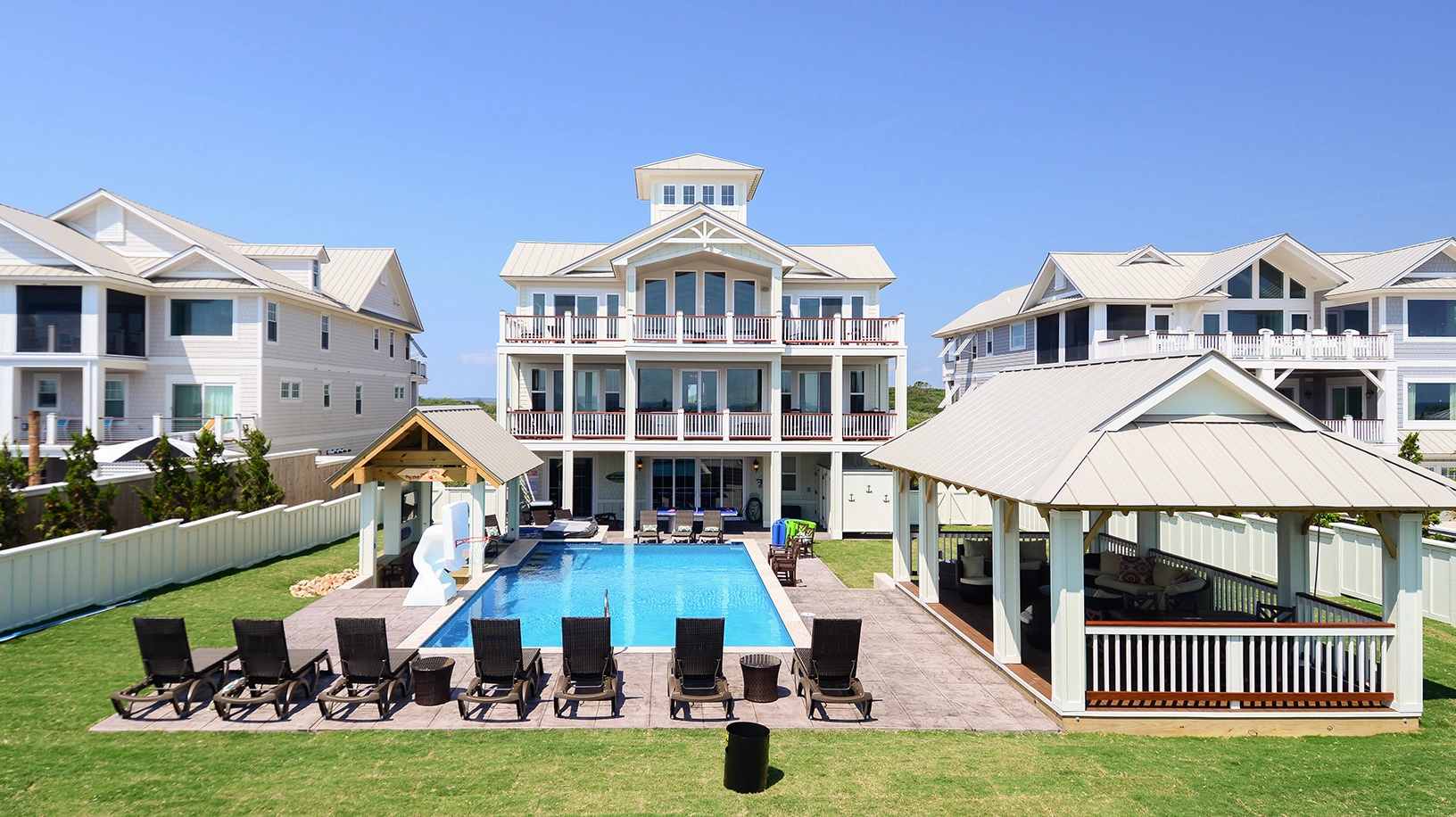 Private pool with swim-up bar; kiddie pool; poolside hot tub; two poolside showers with built-in lockers and changing rooms; covered tiki bar with TV; private walkway to the beach with dune deck; reduced fees and preferred tee times at the Kilmarlic Golf Club. 2026 Beach cabana service provided from April 27 to September 26, only (provides morning set-up and afternoon take-down of two umbrellas and six beach chairs on the beach).