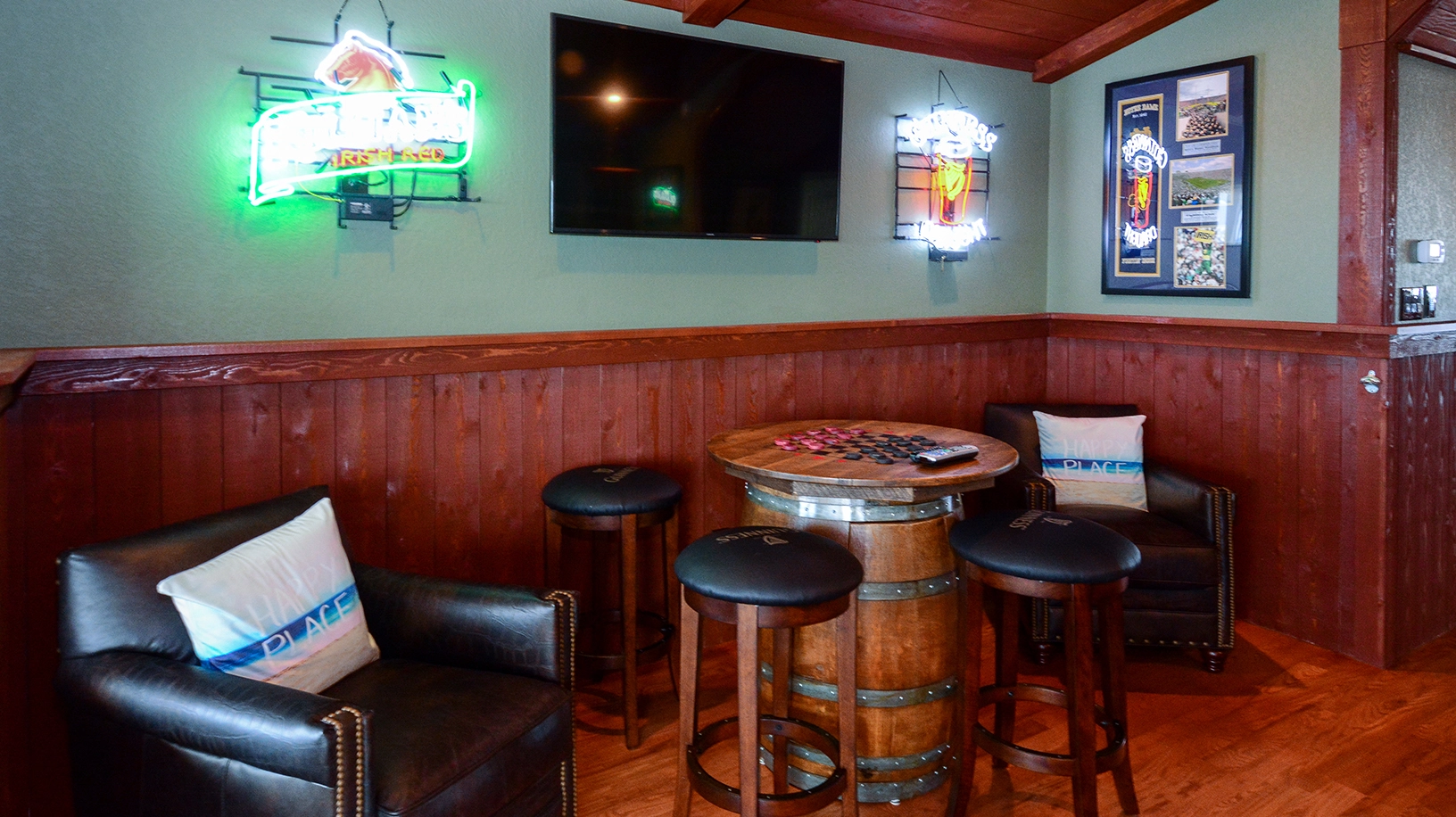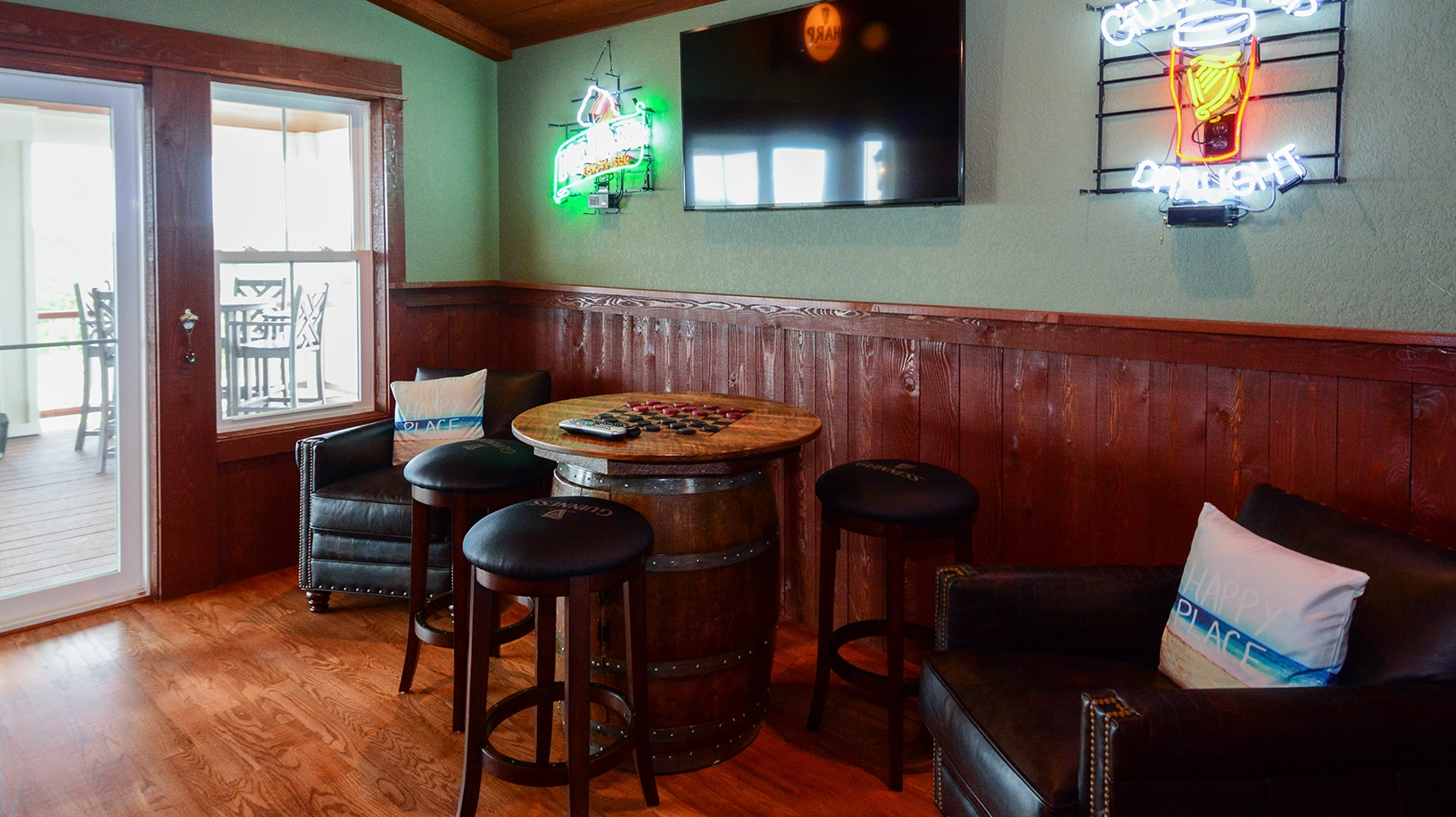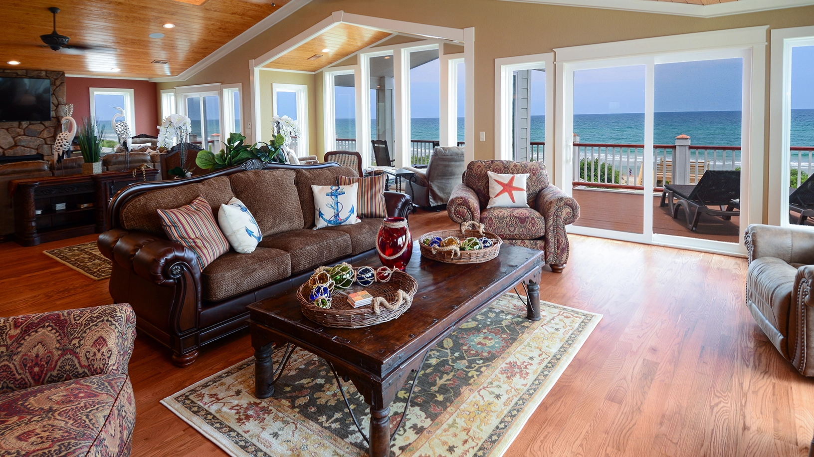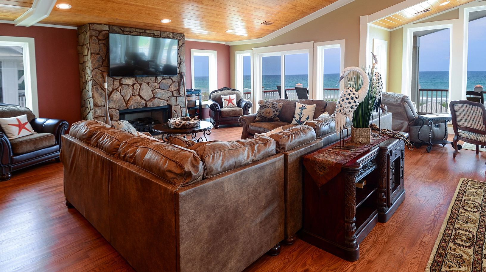 "The layout of the home was wonderful, so many different areas to spend time together or if you wanted some me time as well. One suggestion, instead of a ping pong table I’d have a seating area right outside the downstairs bar and a few round tables for board or card games. Only negative is the decor was not beach, furniture very dark and heavy."