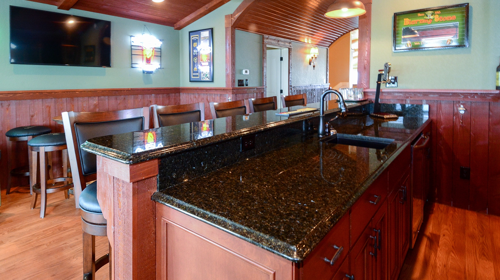 Rec room with pool table and bar; theater room; laundry.