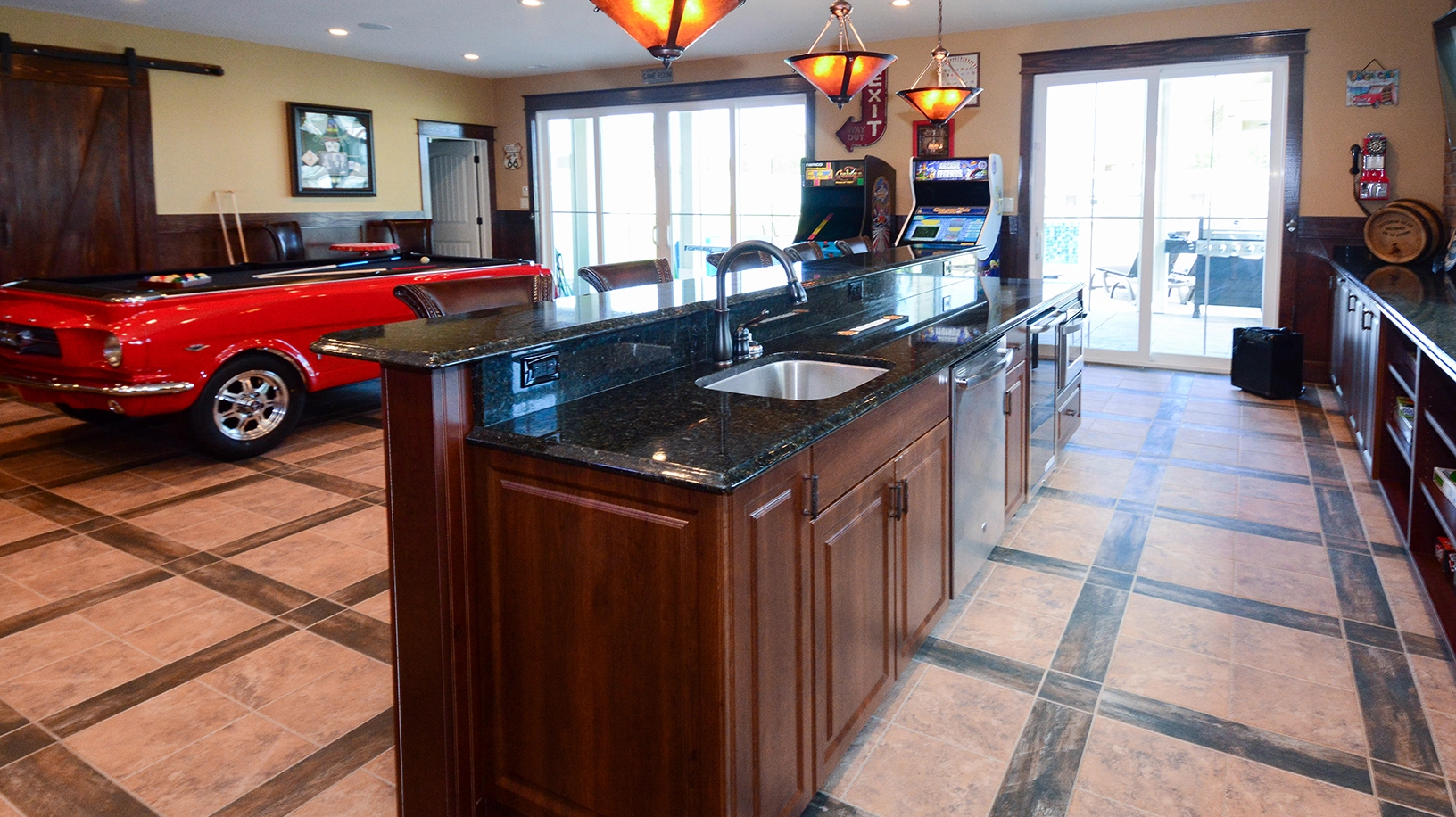 "Arcade, pool, number of bedrooms"