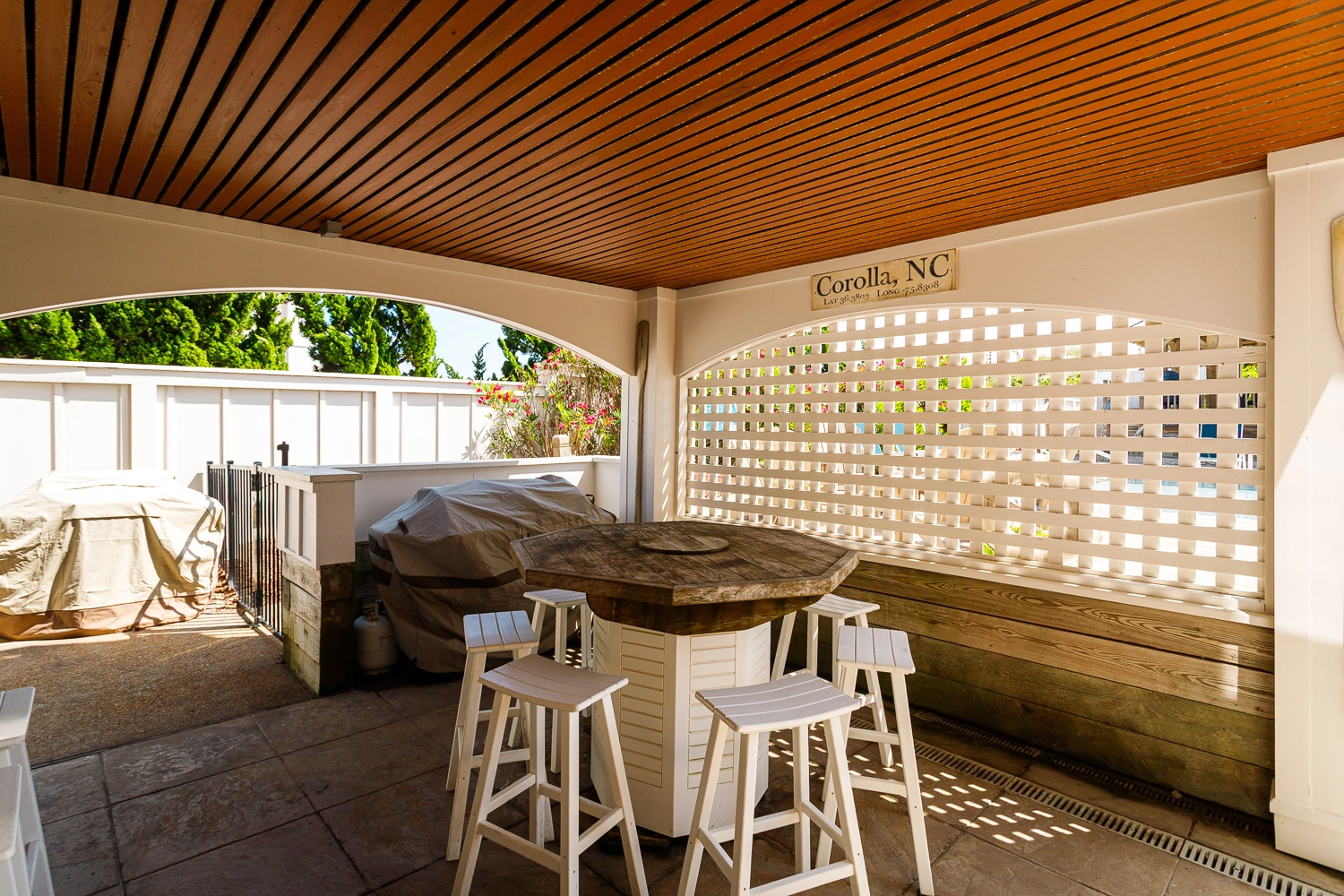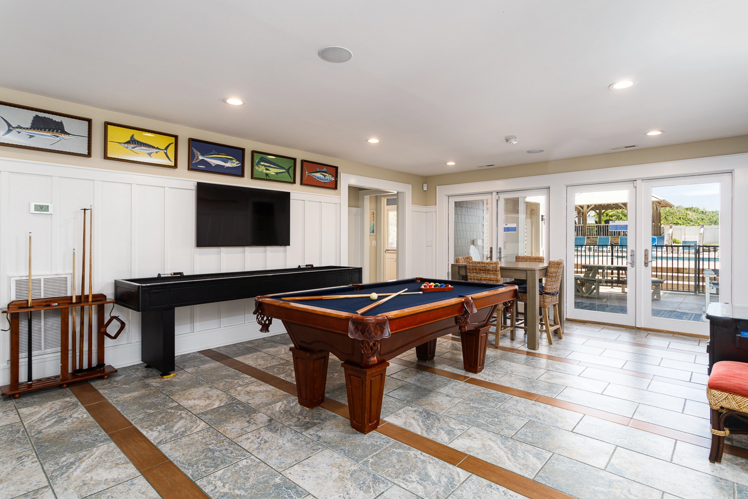 Elevator, theater room, shuffleboard court, two outside showers, preferred tee times/reduced greens fees at the Kilmarlic Golf Club and The Currituck Club. 2026 Beach cabana service provided from April 26 to September 25 only (provides morning set-up and afternoon take-down of one 10'x 10' tent and six beach chairs on the beach from May 24 - September 11. Two umbrellas and six chairs will be offered from April 26 - May 22 and September 13 - 25).