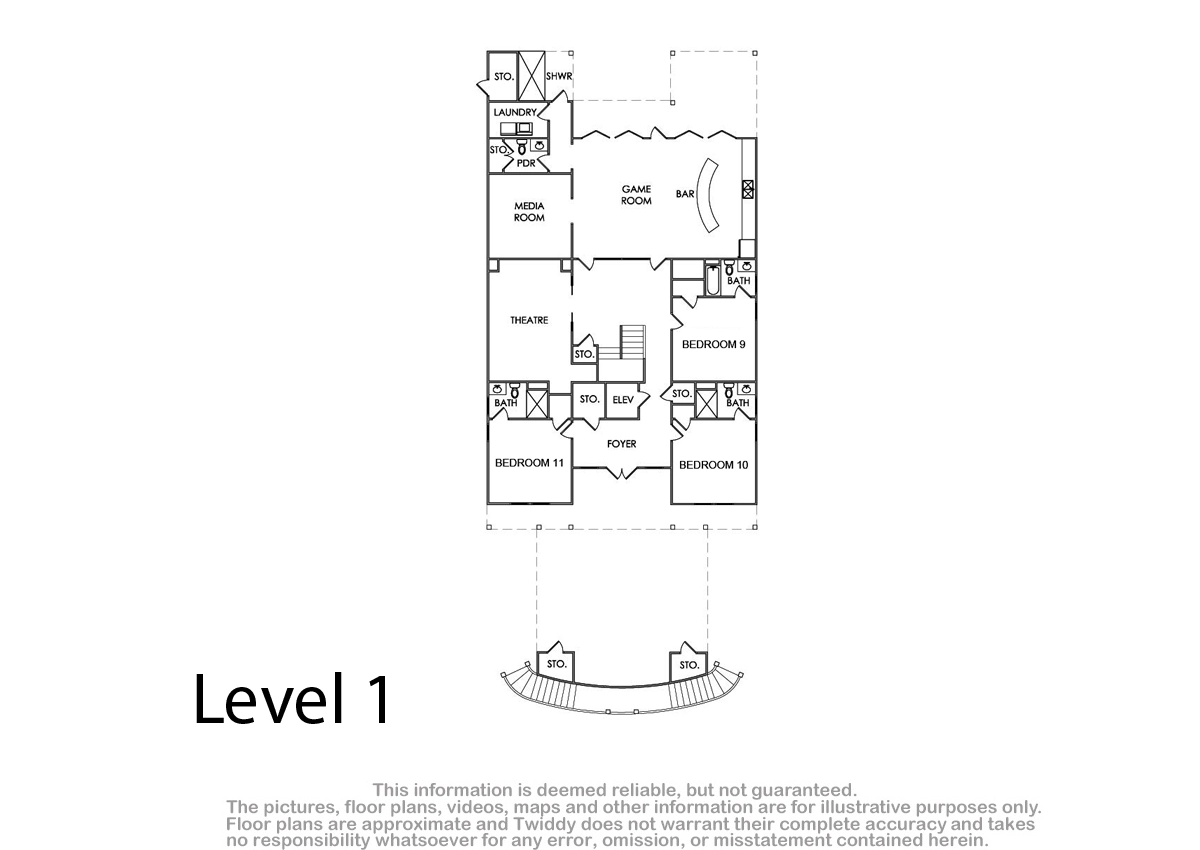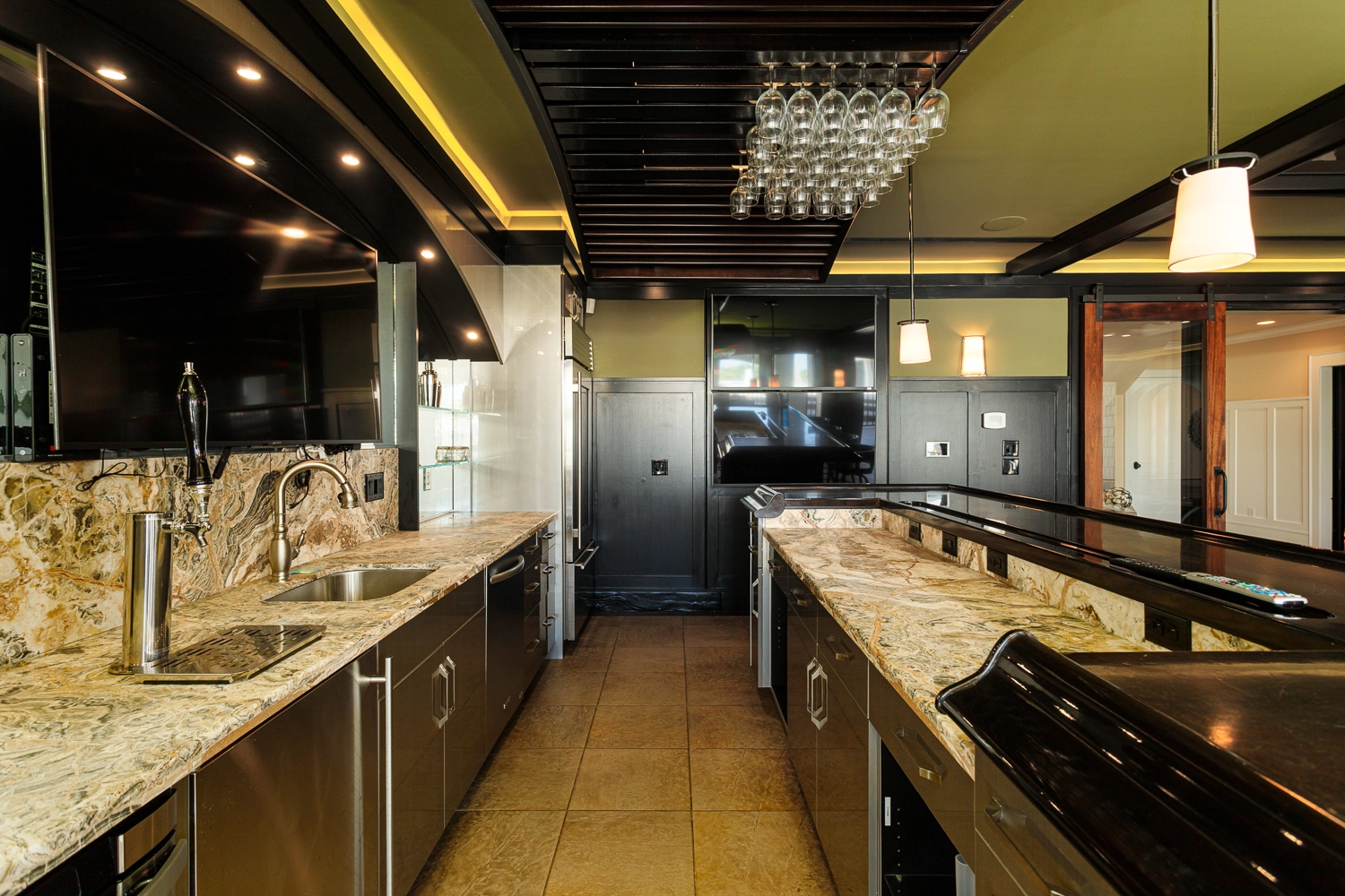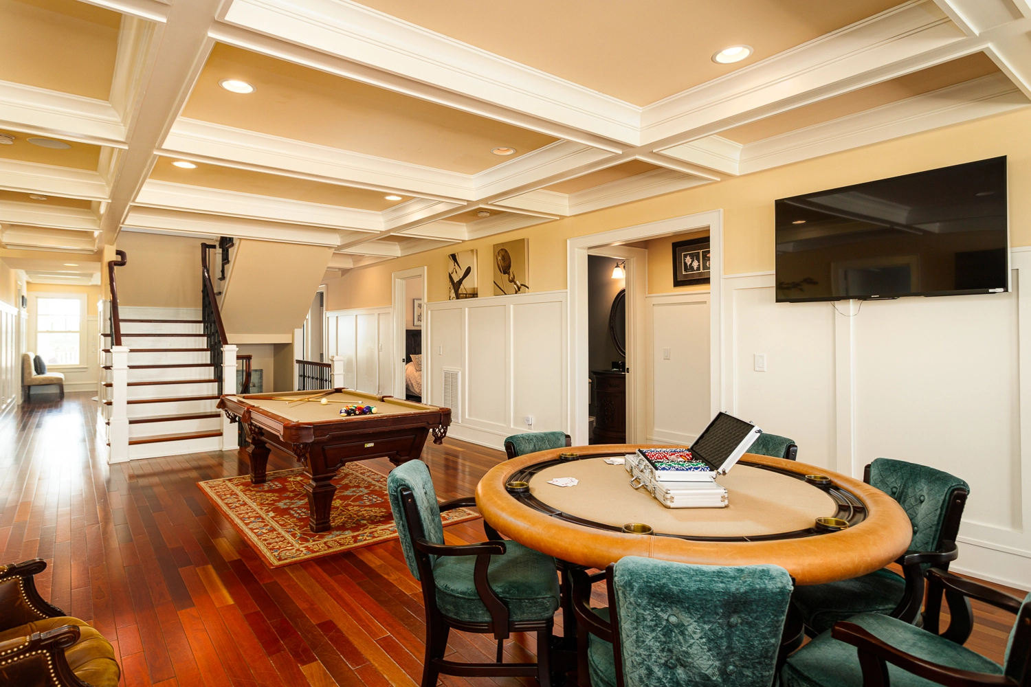 Theater room; kids cave/arcade room with a driving arcade game, Buck Hunter arcade game, and Pac Man game; terrace room with bar, ping pong and air hockey; laundry.