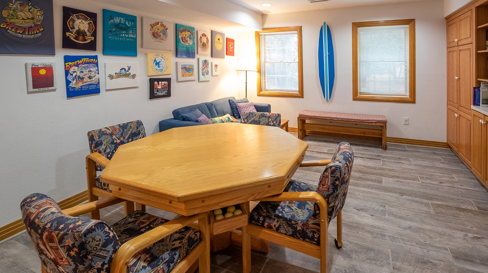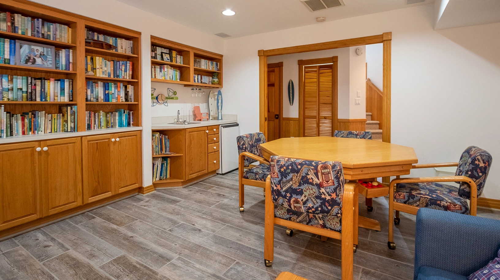 Rec room (QSS) with bumper pool/game table and wet bar.