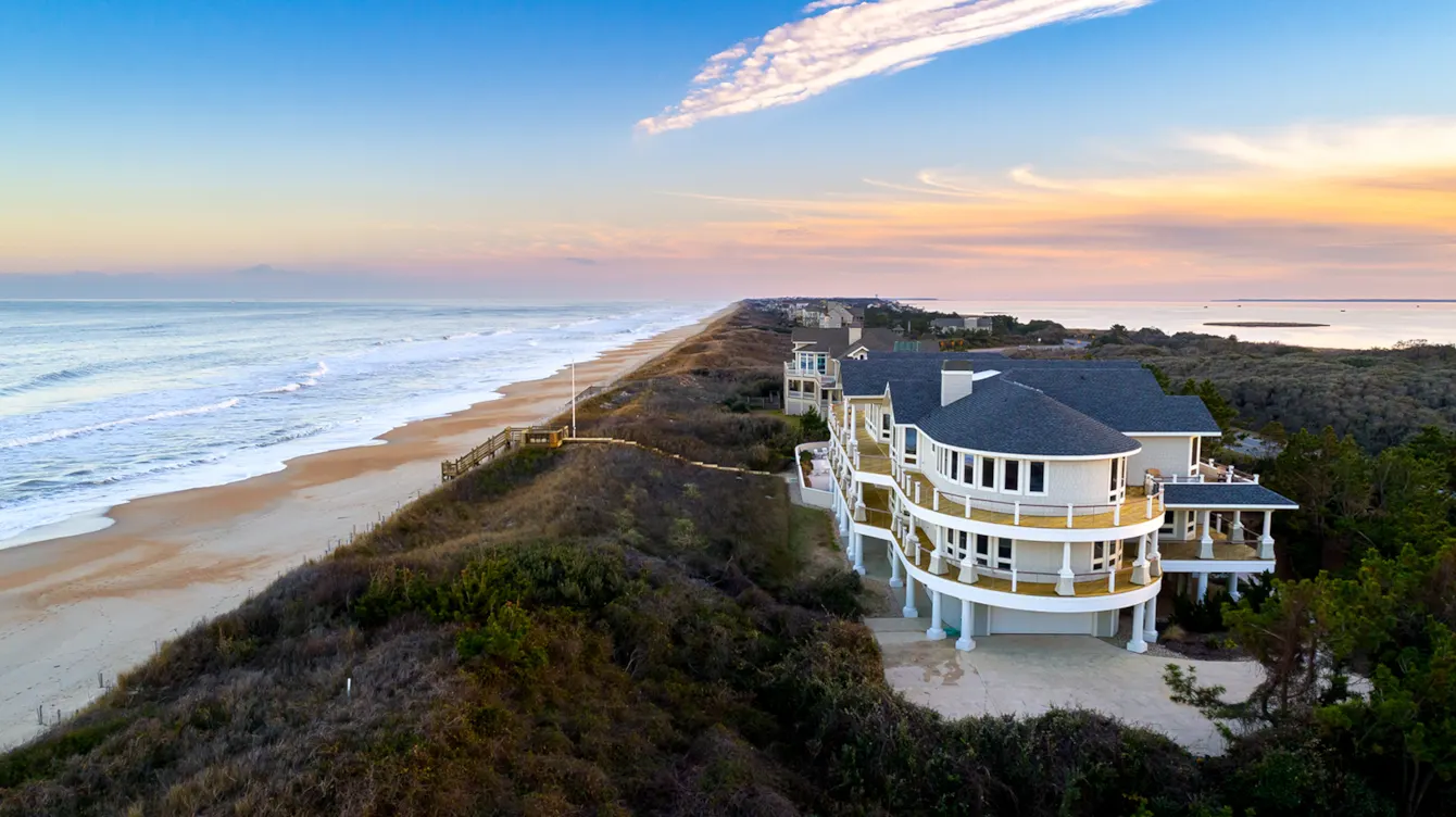 "Top tier home quality, thoughtful design, and a propitious location. The home's location's makes you feel like you are on a cruise ship. Wide expanse of ocean on one side and the Currituck sound on the other. The pool area is a resort type level of entertainment. We had a few families with smaller children. The kids played in the pool and hot tub, played mini golf, had snacks at the bar...while the adults sat in porch swings that were all in the shade. For hours we were able to relax and catch up. The beach is essentially private as our families played together with an abundance of space. We also enjoyed a short walk on the Audubon trail, which was a 5 minute walk from the home. The kitchen was well stocked and had a great layout for everyone to enjoy meals together. The sauna was a huge hit after swimming in the ocean. The theatre room had a great layout for different family sizes and ages. The south deck screen porch was nothing short of magical. We spent hours on the deck watching the ocean, the moonrise, and sunsets. Everyone in the group made the easy decision, let's return next year. Exquisite experience. Wonderful memories."