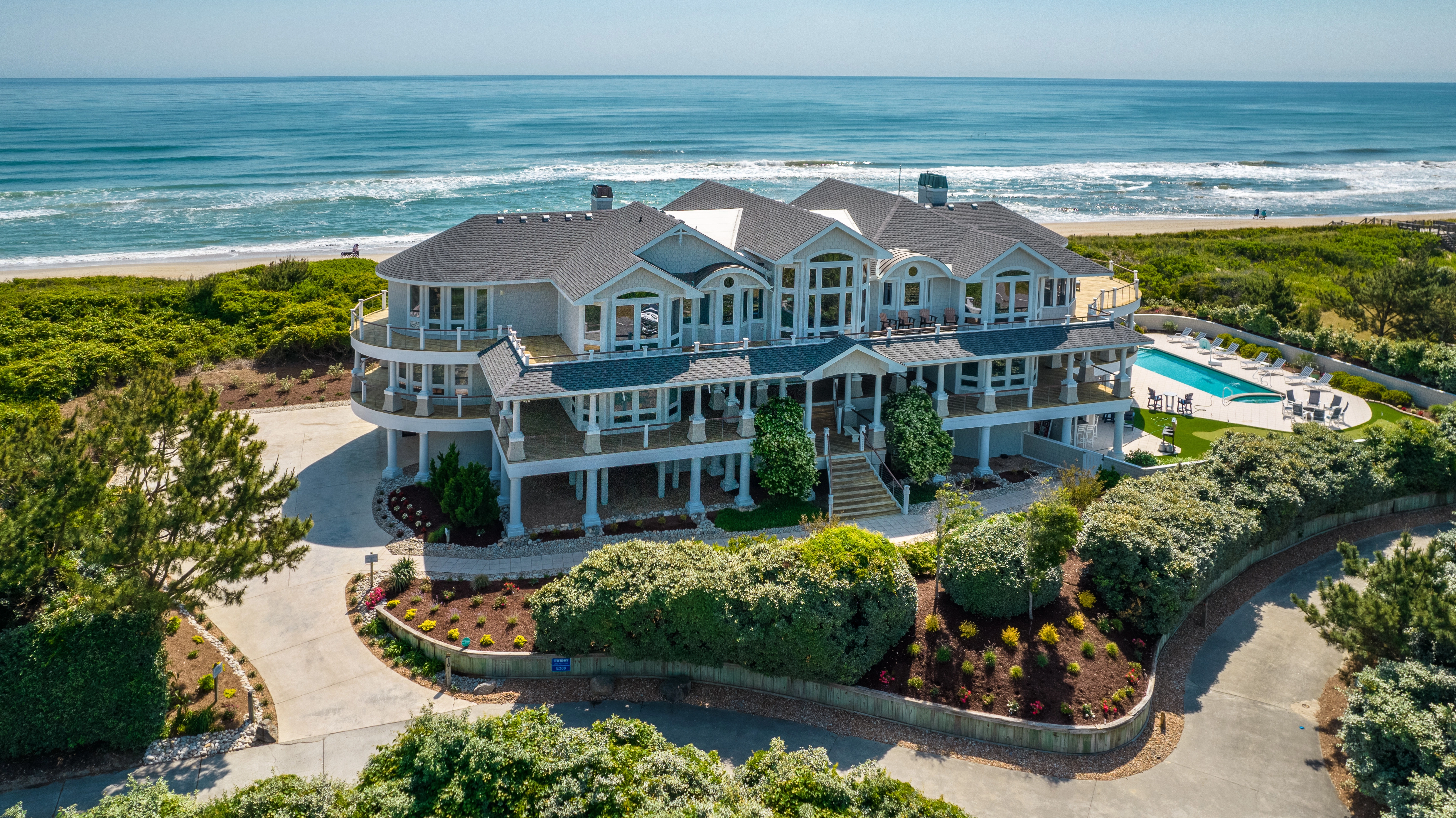 Elevator, private pool with in-ground soaking tub, hot tub, sauna, private beach access with dune deck, multiple TVs, poolside cabana with TV and refrigerator, putting green, and 2026 beach cabana service provided from May 24 - September 11 only (provides morning set-up and afternoon take-down of two umbrellas and six beach chairs on the beach).