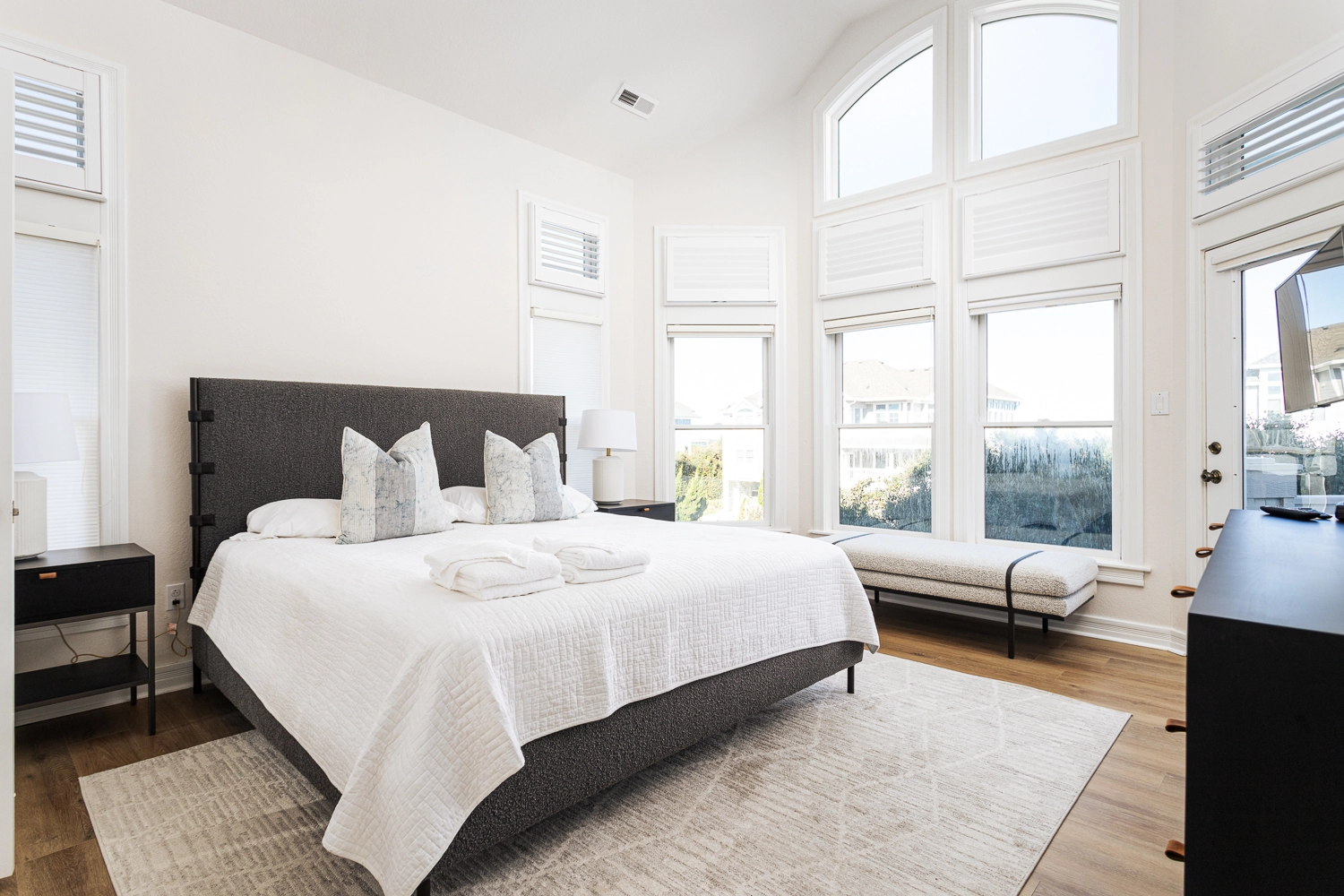 King, Standing shower, Whirlpool tub, Deck access
