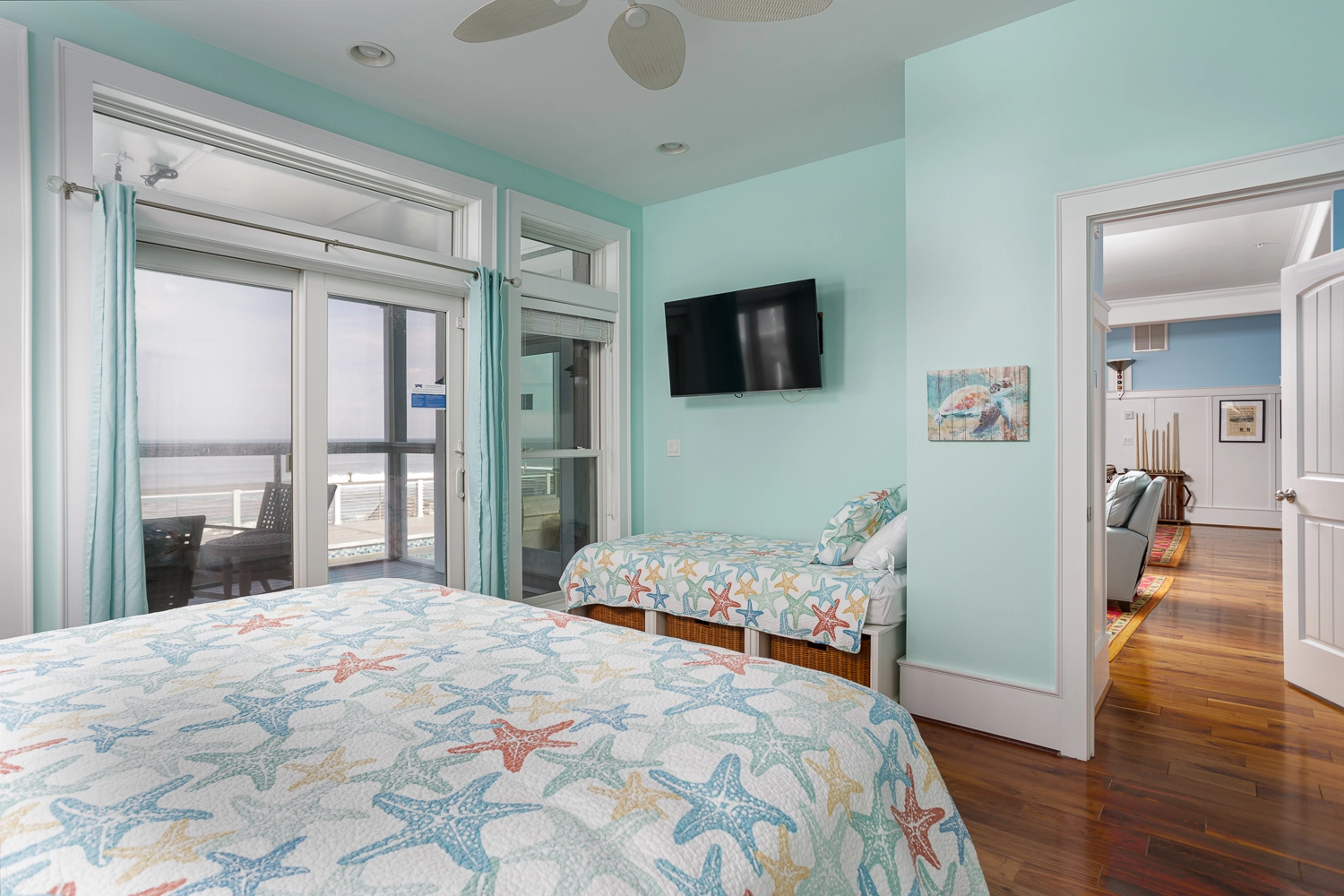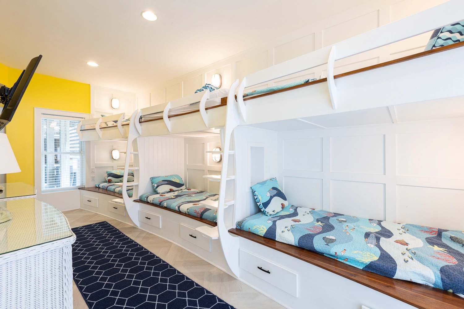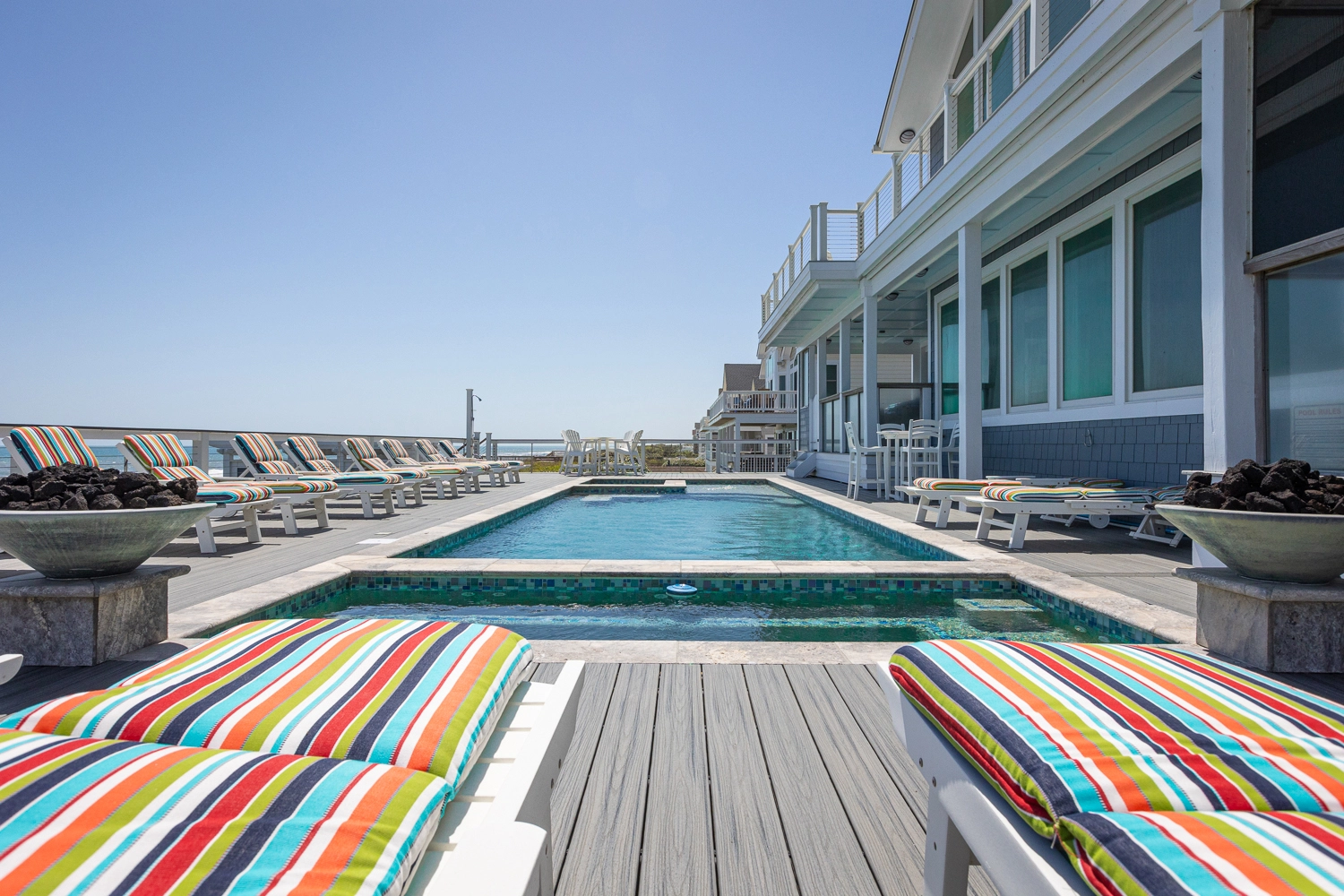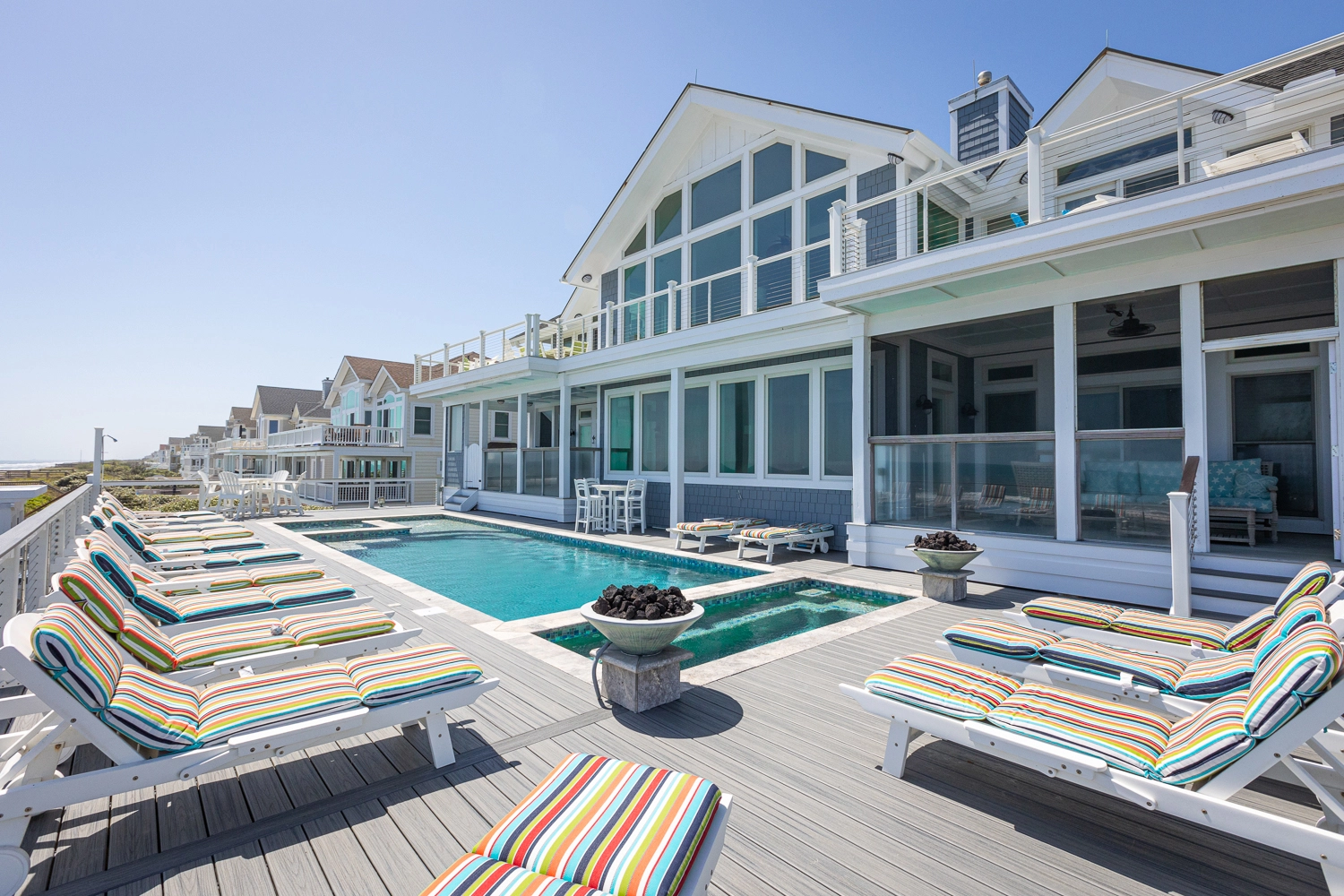 "If you are looking for the perfect spot for a large family reunion then look no further. This house has it all. 8 king beds with private bathrooms. 2 6-bunk rooms for all the kids. An amazing 2nd level pool that gives you beach views. Plenty of deck space including a large screened in porch on the sound side for great sunset views (and protection from midges when they are around!). A very spacious and well equipped kitchen making large meal prep a breeze. Ice makers galore to keep your coolers chilled. The beach cabana service is amazing. You get a 10x10 tent, cooler of ice, blender, bluetooth stereo and 6 chairs set up every morning (certain weeks only) making that awkward hands full of beach stuff trek to the beach absolete. The location is prime. It is in an area where there is only 1 strip of houses on the beach side so the beach feels like your own private oasis in the sand. We had 24 people in this house and it never felt claustrophobic. I would recommend this house to anyone!"
