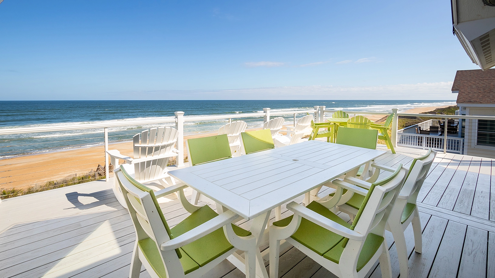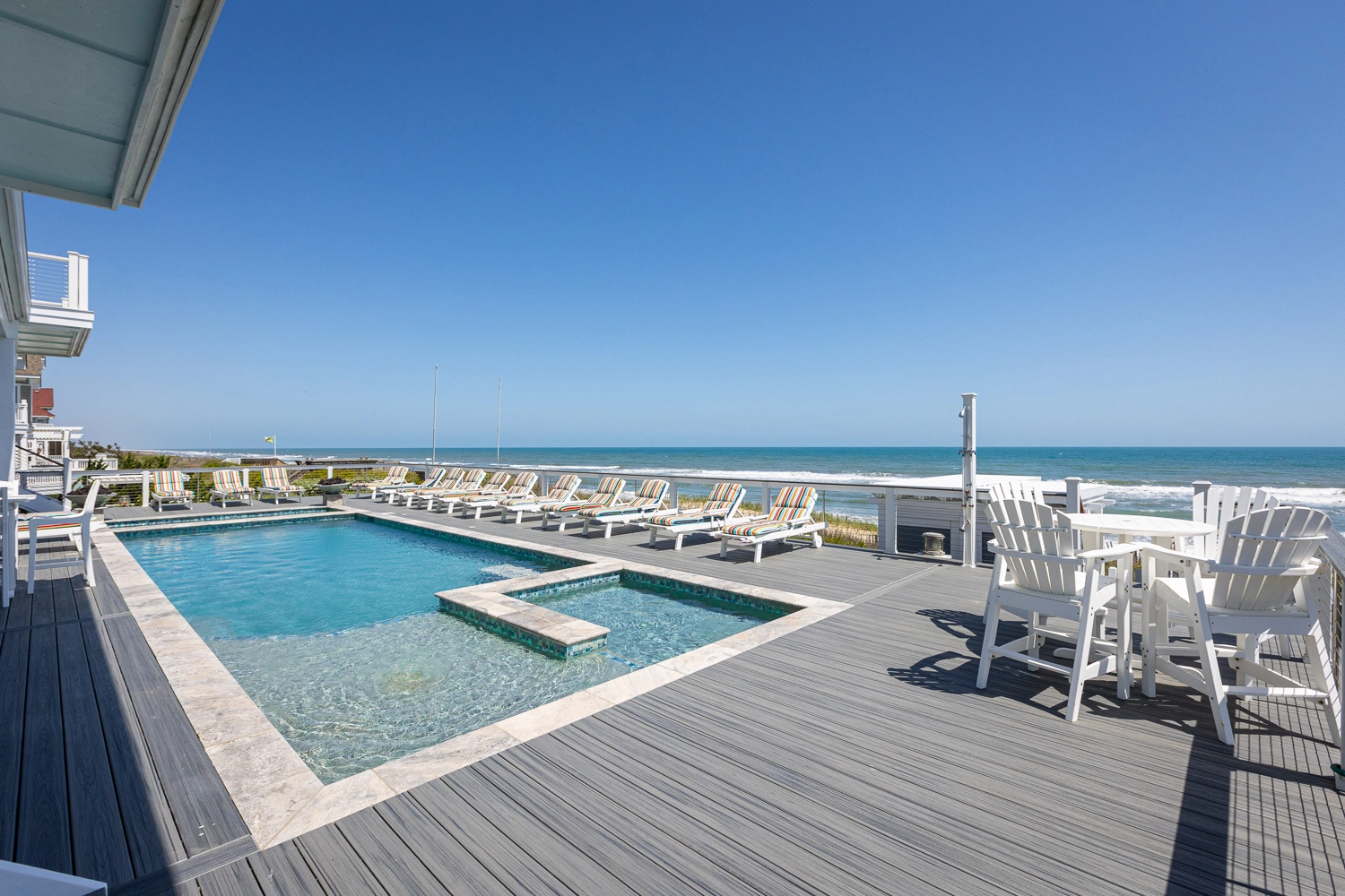 "This is our third stay at this house. We love the way the pool is at a higher level from the other houses and we can enjoy the ocean views while lounging by the pool. The modern bathrooms and sizeable rooms are also great. It has a great kitchen that is well stocked. We think it is one of the best houses to rent in the OBX."