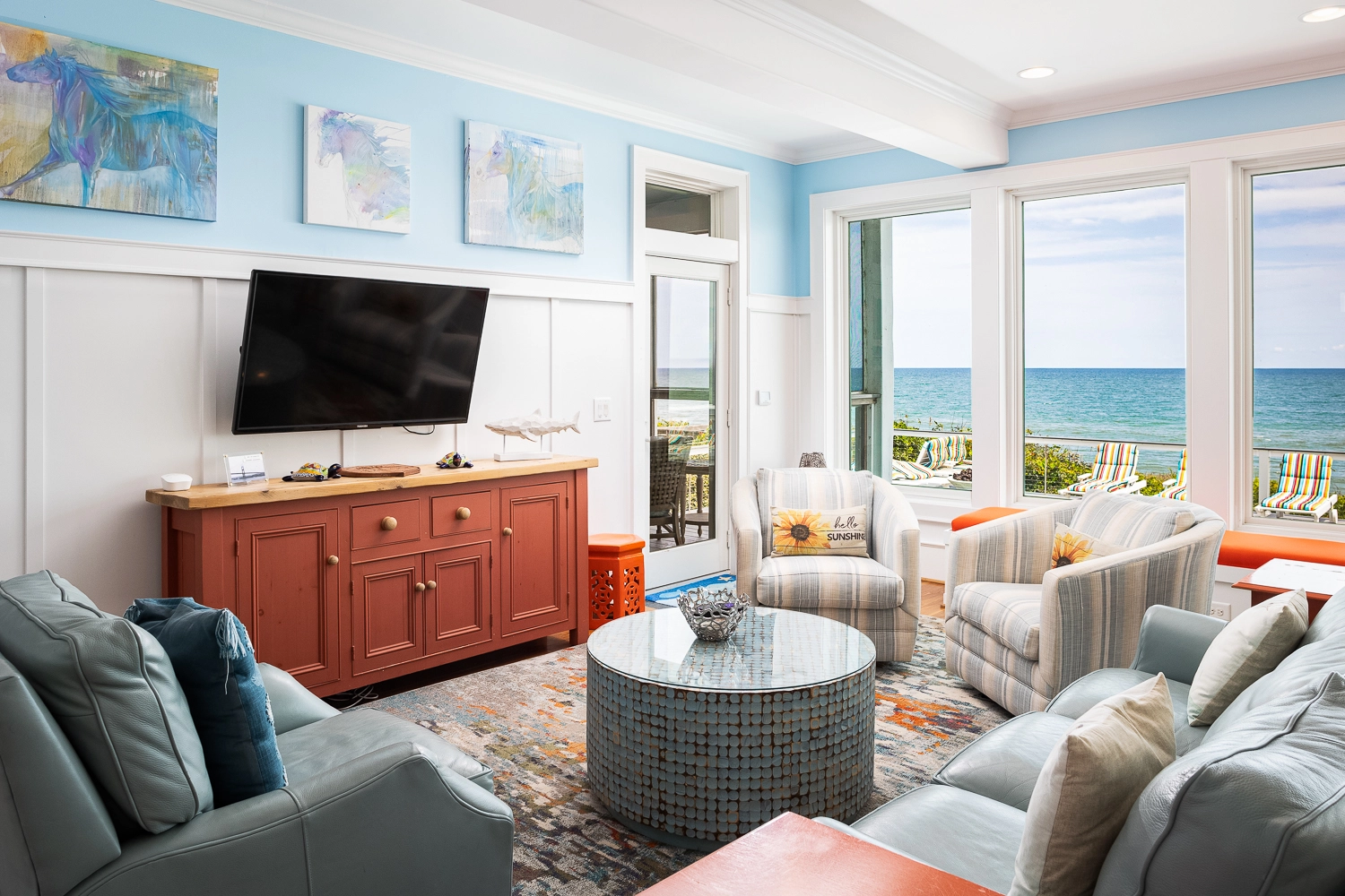 "The main feature is that home is just that it feels so warm and safe, and loved. The third-deck kitchen and living area are so beautiful, and the huge windows make the ocean feel like part of the decor is absolutely stunning; when you walk into the house on the second floor, the ocean greats you like a family member; it takes your breath away. Every room feels like a suit and unique, and each guest feels like a VIP. We loved the pool deck that overlooks the dunes and makes you feel like you are on the beach. The beach service is fantastic, and at night, the theater room feels like an actual luxurious movie theater. We love all the features and the house."