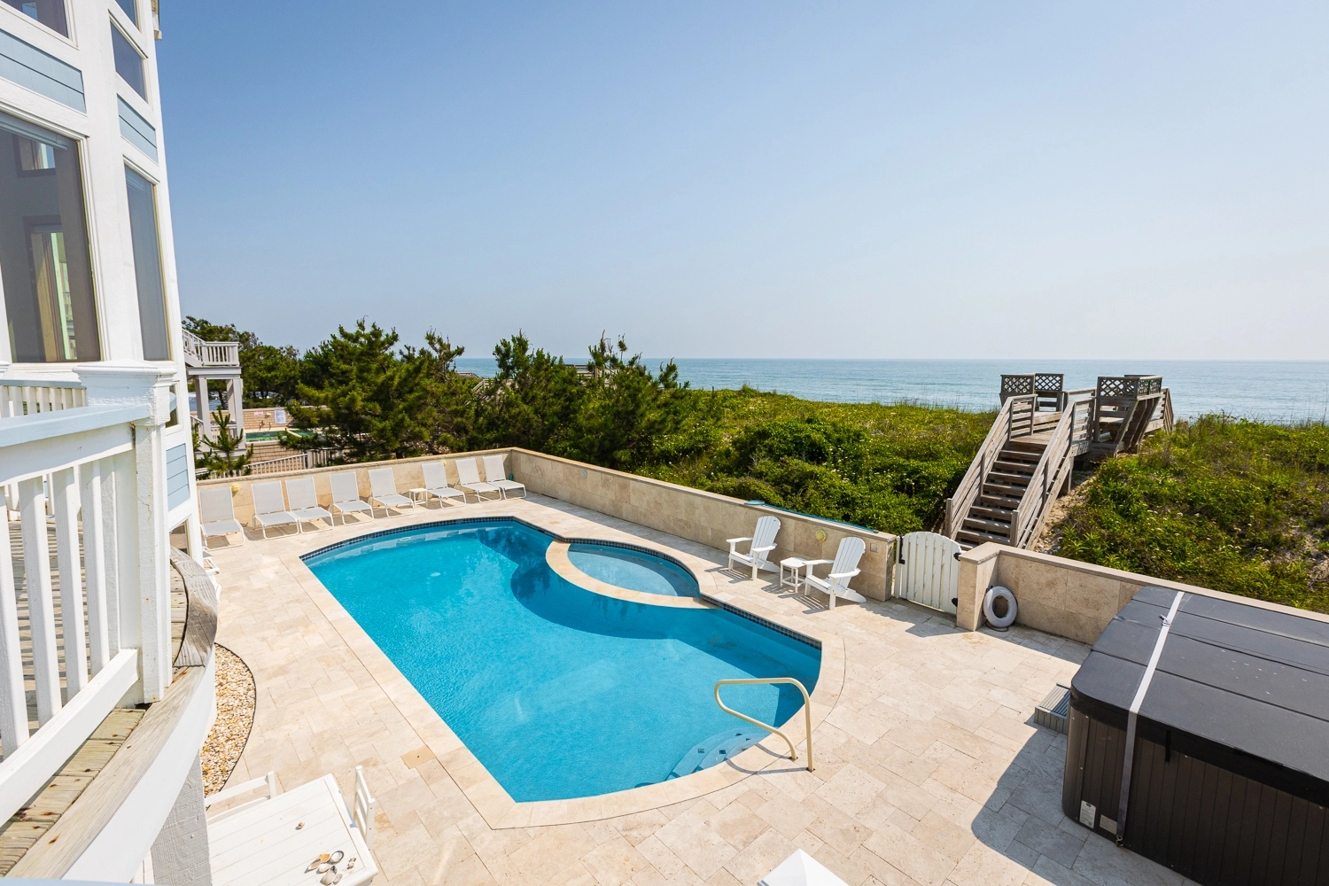 "Pool with toddler section. Beautiful views of ocean and bay. The interior is beautiful and well maintained. The bedrooms are beautiful and spacious. The kitchen is large and well stocked. We loved the private beach"