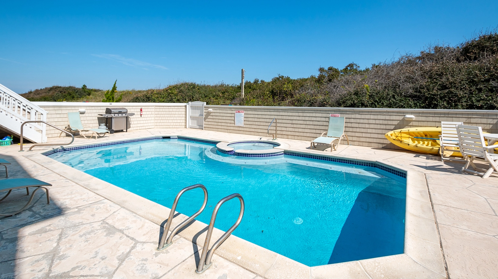Private pool with shallow area for kids to play, Hot tub, 2026 Beach Cabana Service from May 25 - September 12 only (provides morning set-up and afternoon take-down of two umbrellas and six beach chairs on the beach).