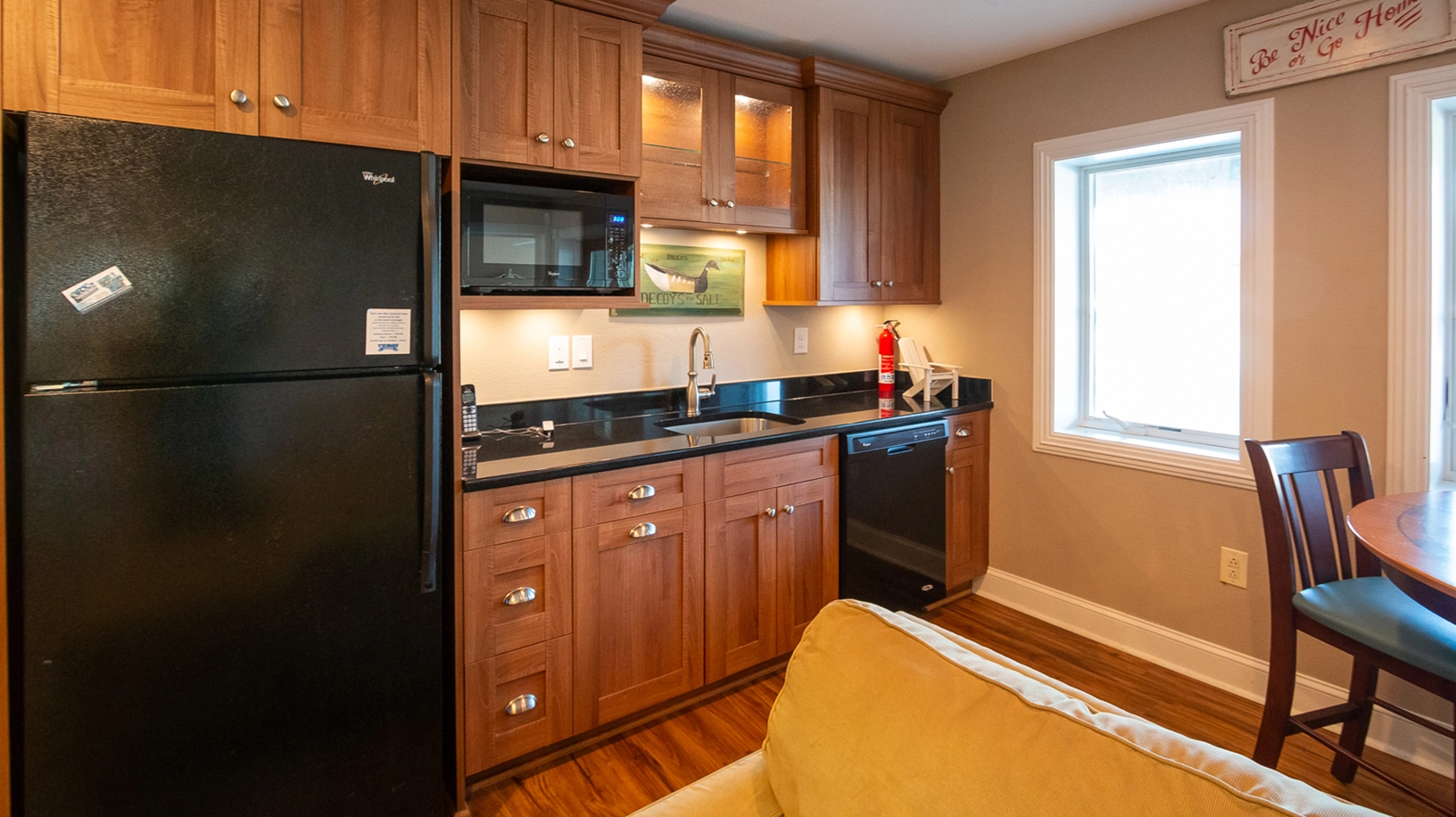 Den with kitchenette and full size refrigerator; laundry (two washers, two dryers).