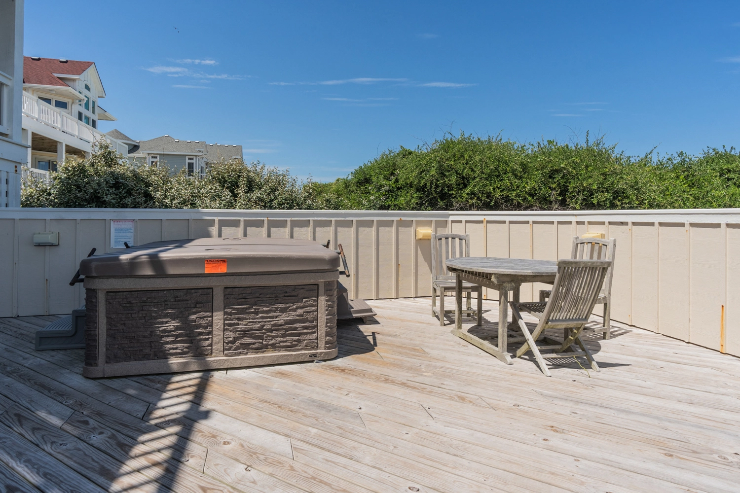 Mary Ann - thank you so much for your kind review regarding your recent stay at our home, and your improvement suggestions as well! We are addressing the hot tub issues immediately with a complete replacement. And we are obtaining quotes for installing an outdoor shower to address sandy feet when returning from the beach. We hope you will vacation with us again in the future! - Debbie & John Duarte