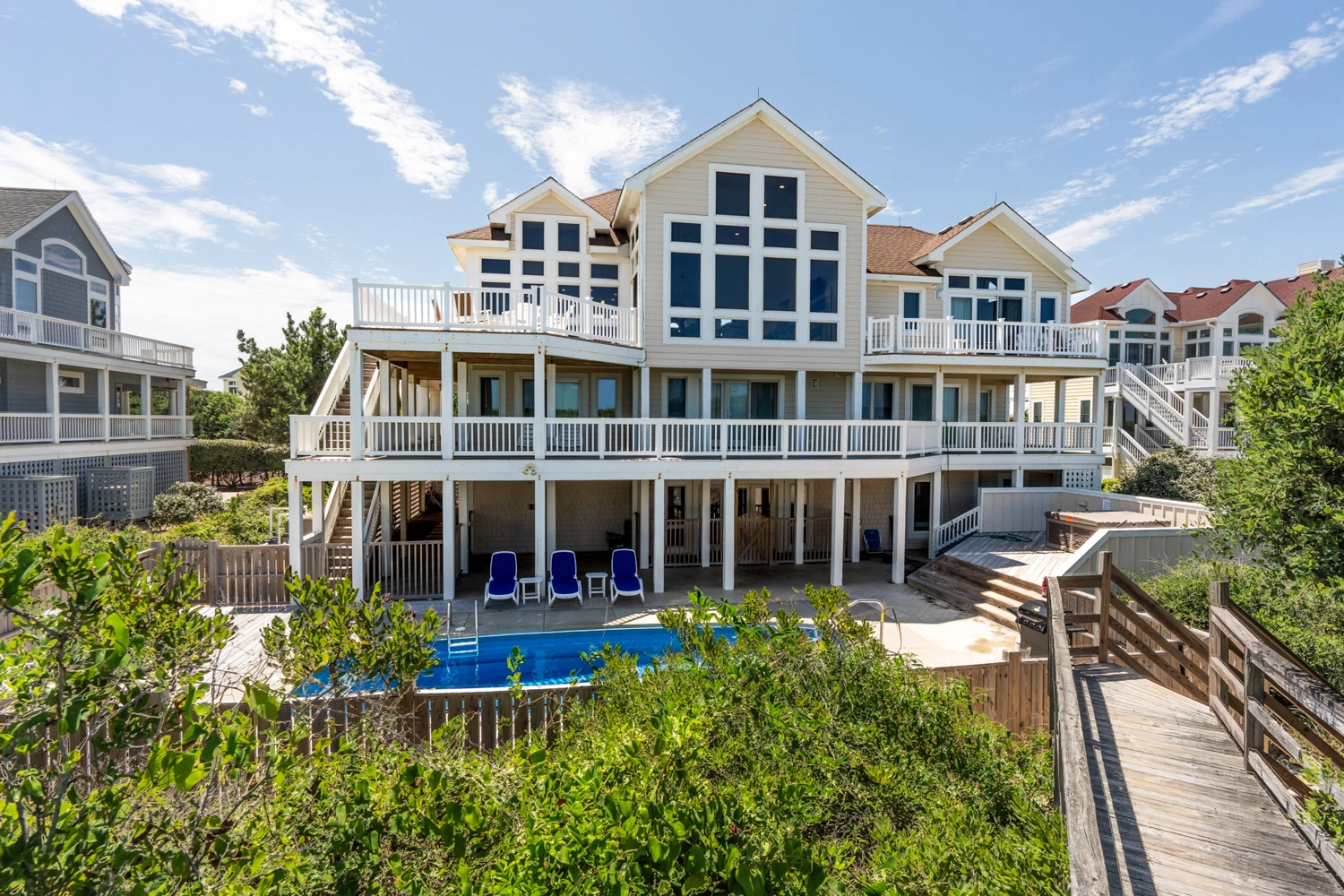 Private pool, hot tub, elevator, private hot/cold outdoor shower, business-grade wifi with access points on each level, community pool, and community tennis access.