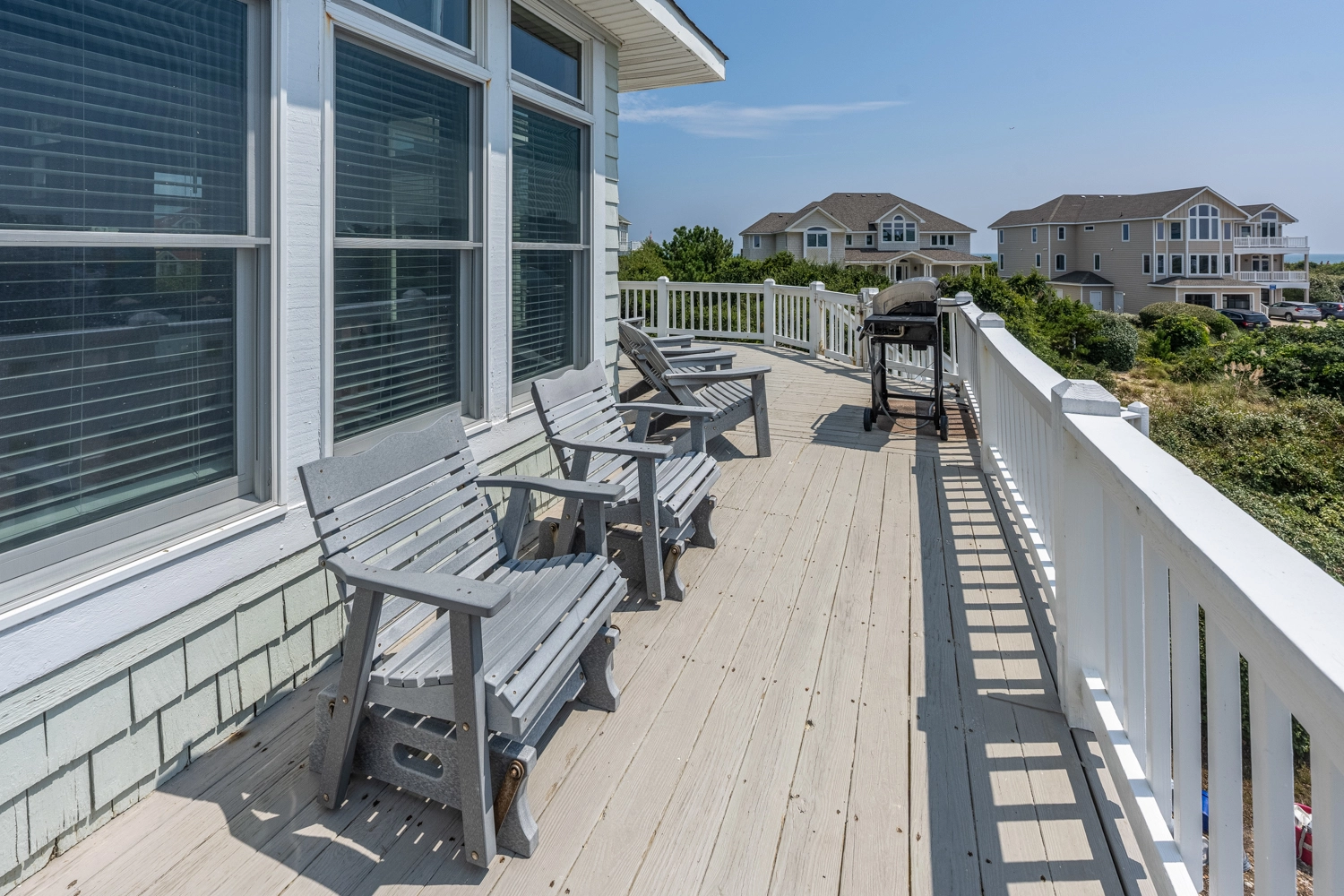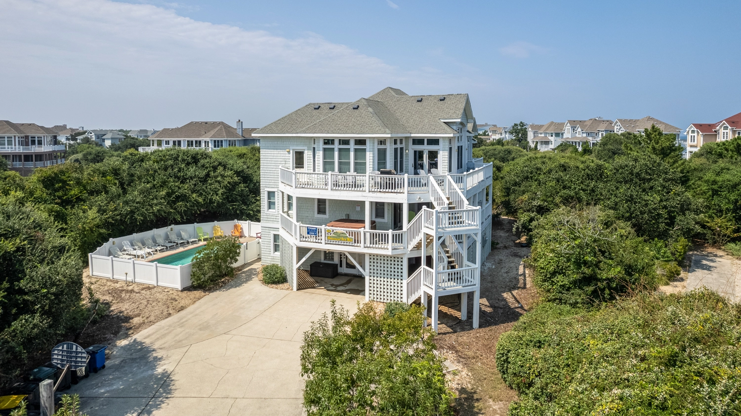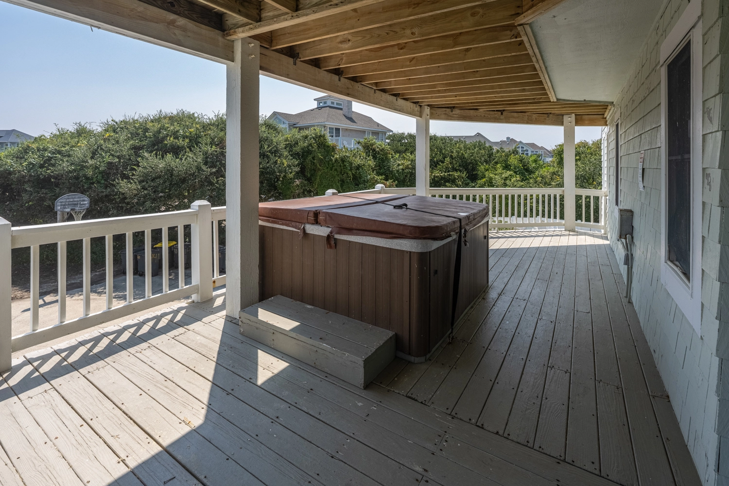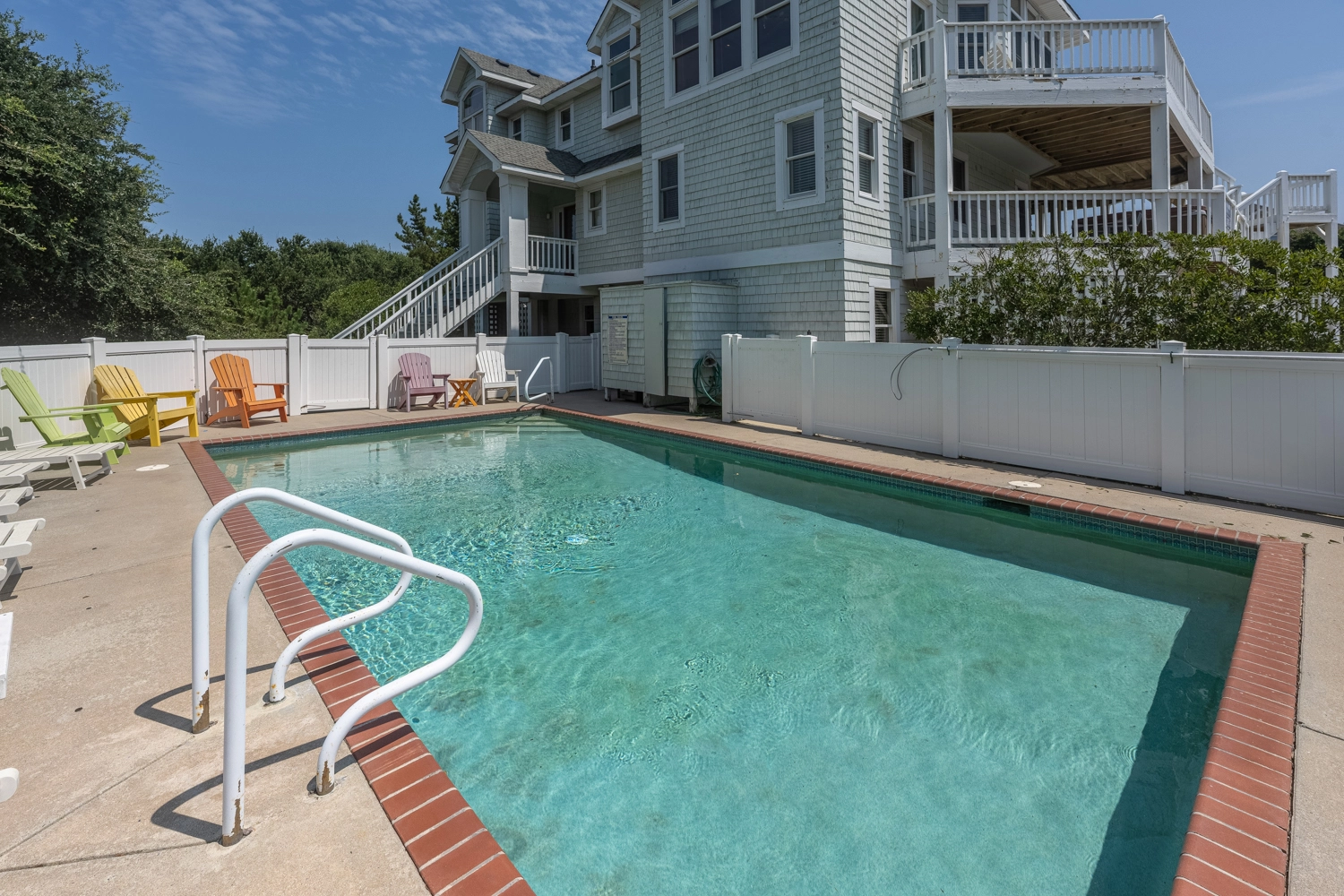 "This is a spacious home, with any easy boardwalk to the beach. The beds are comfortable and the kitchen is well stocked. The hot tub was nice, though on the second level deck, and the pool is larger than many at the Outer Banks, though somewhat shallow. The neighborhood has large homes on large lots -- it's not crowded at all -- and there are nice walkways for walking/biking/running that go for miles when combined with roads (at least two miles south -- I turned around before I hit the end). The cleaning at turnover could have been better. We would definitely come back!"