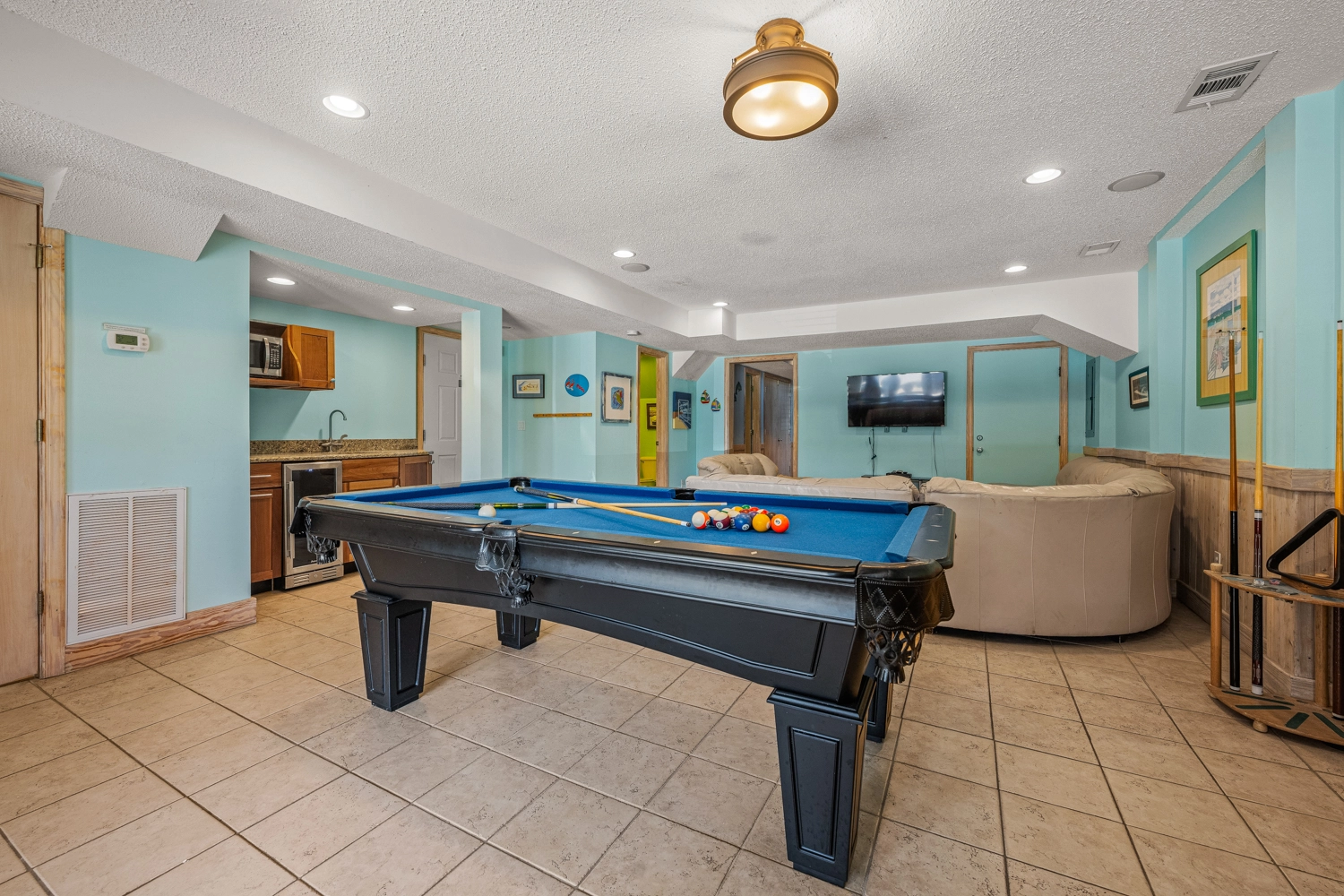 Rec room (QSS) with pool table, wet bar and surround sound system; laundry; private pool.