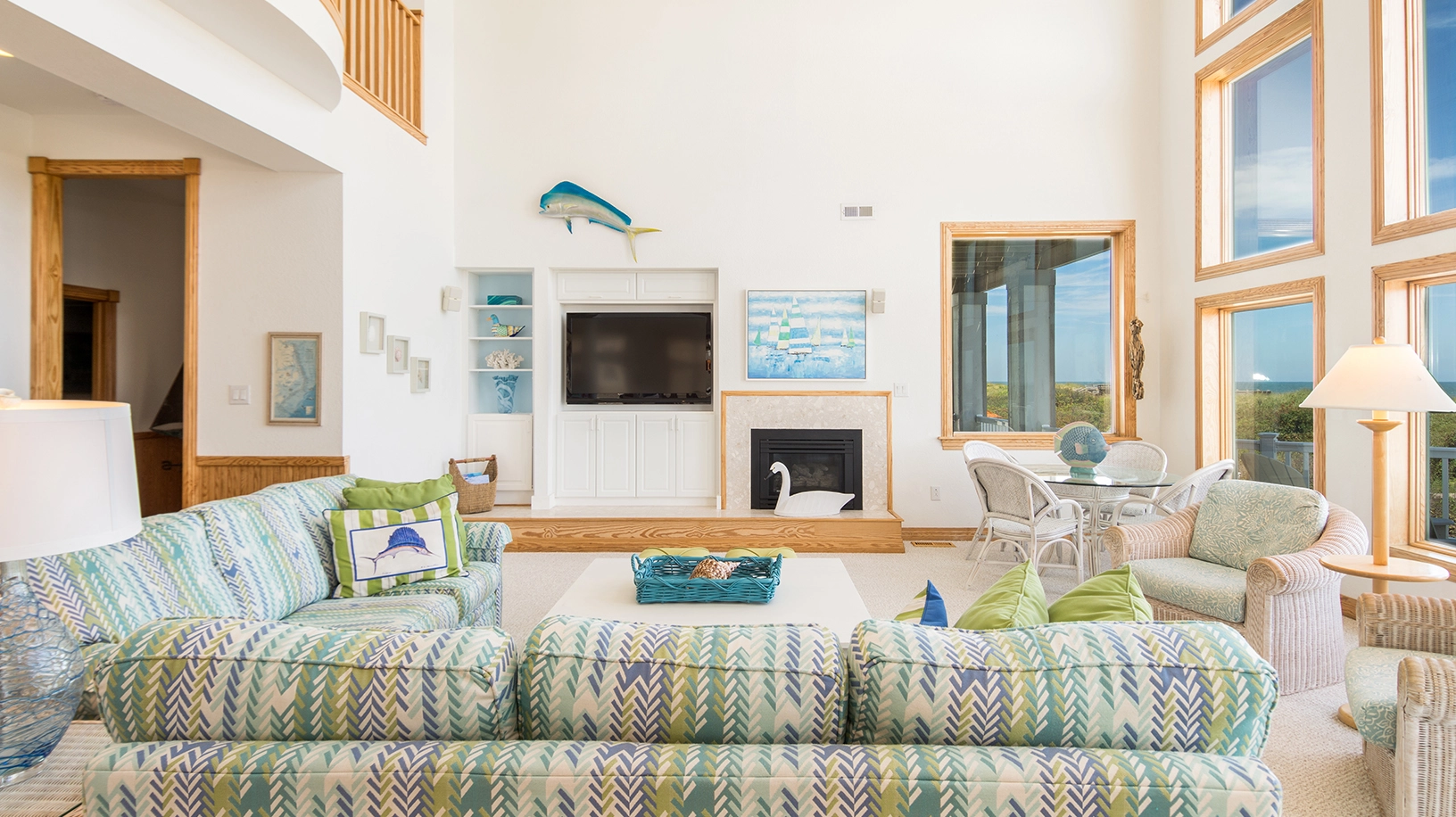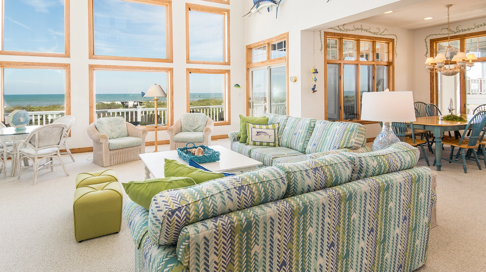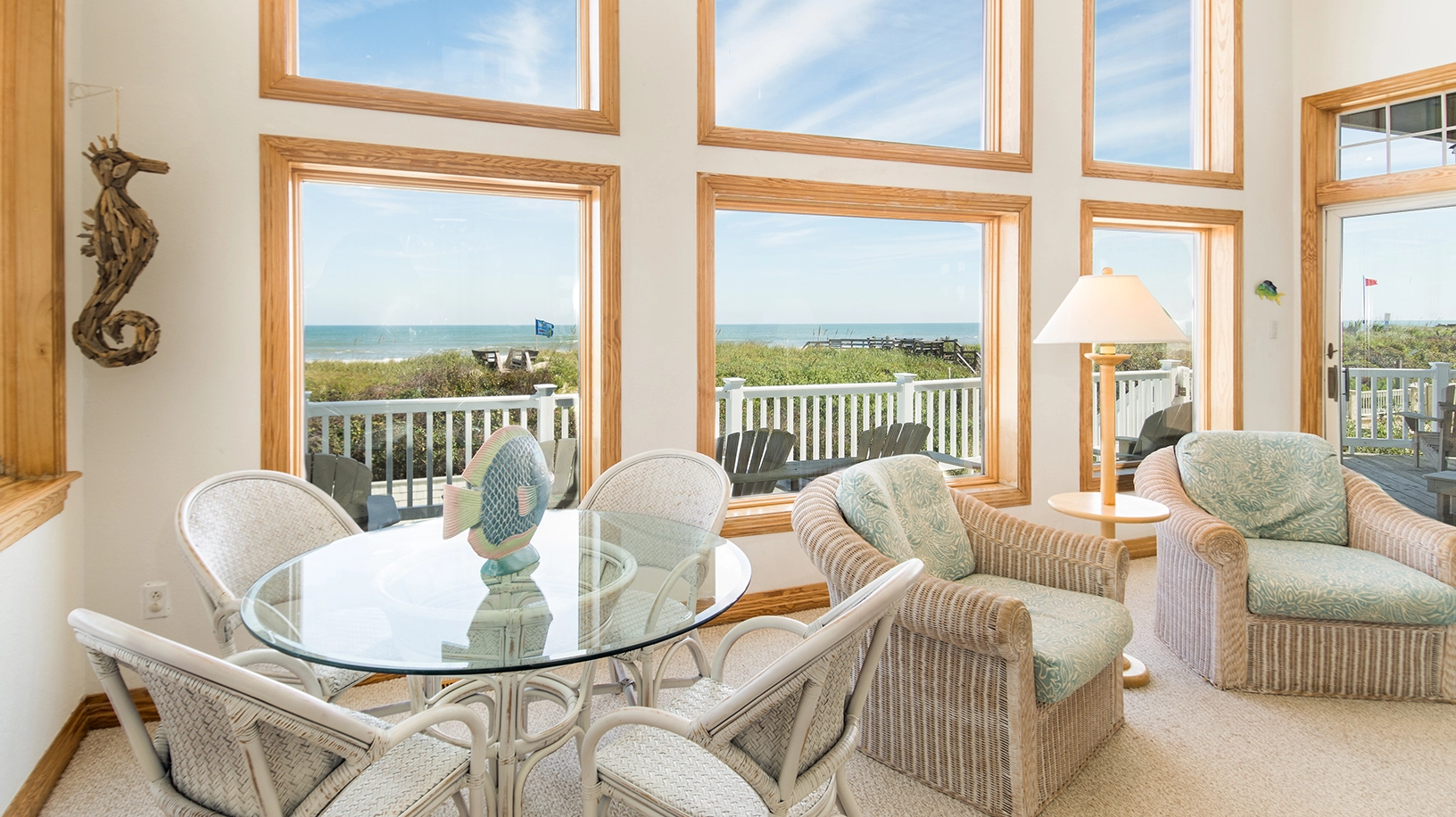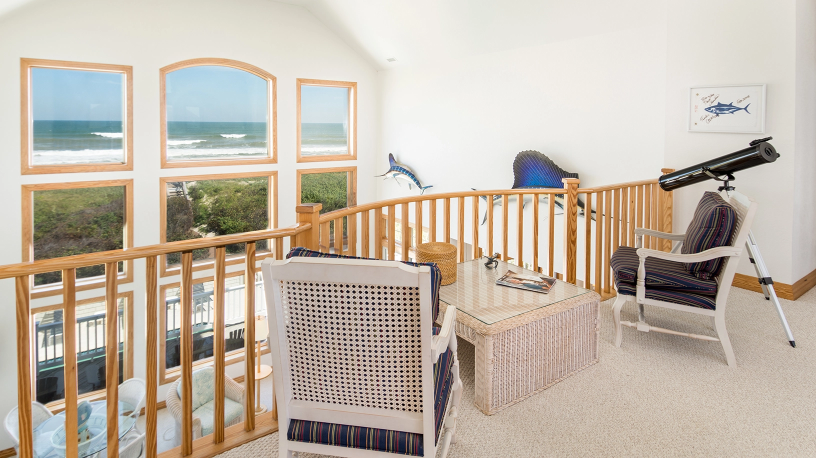 "Loved the interior layout. We were uncertain when we booked the home that having the kitchen on the middle floor and four bedrooms on the upper floor was going to be as enjoyable as the inverse. Every house we had previously booked had the kitchen/living room on the upper floor. We now prefer the layout of Carolina Dream! More bedroom views and the view from the middle level was fantastic with the two story+ central window! Spectacular!"