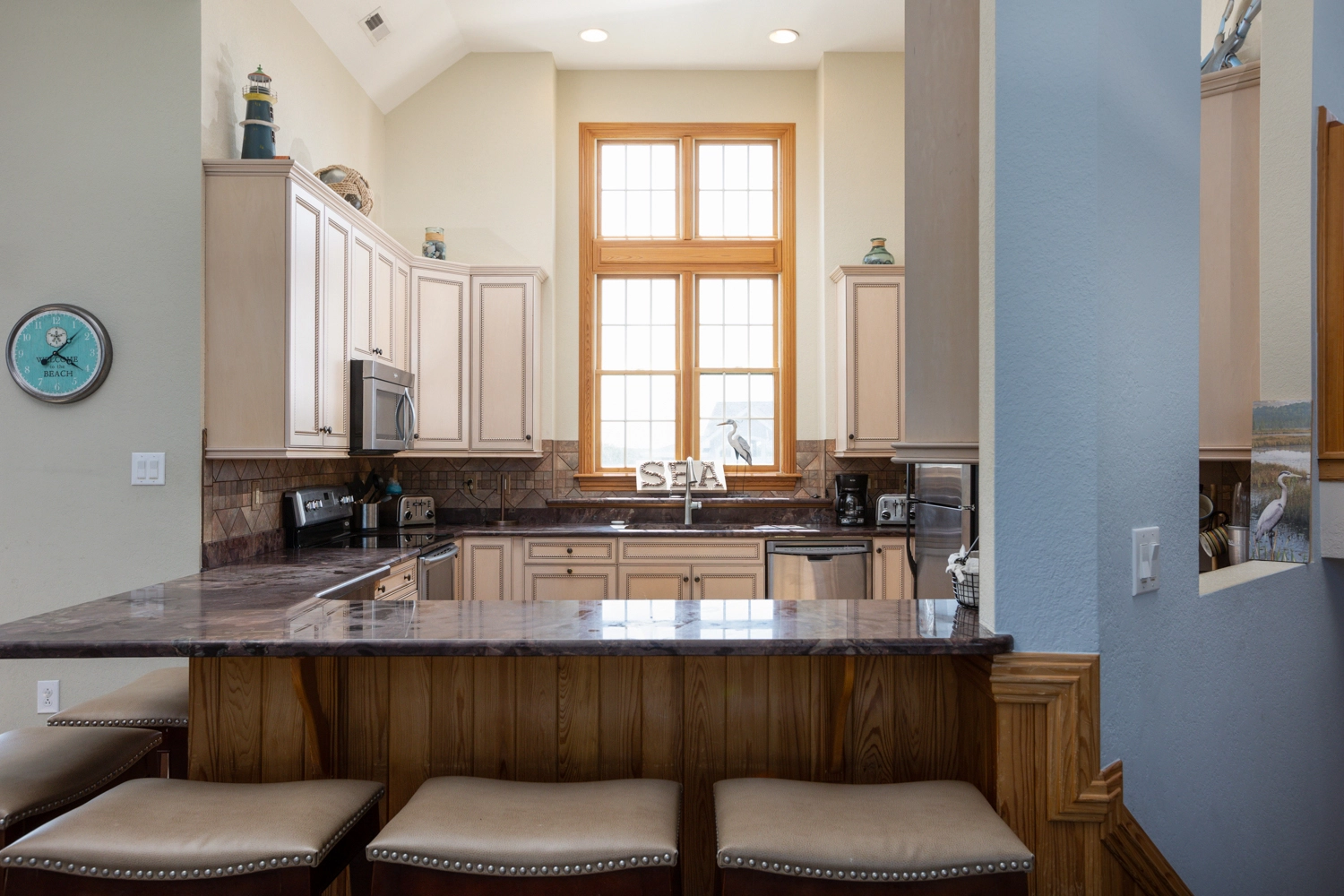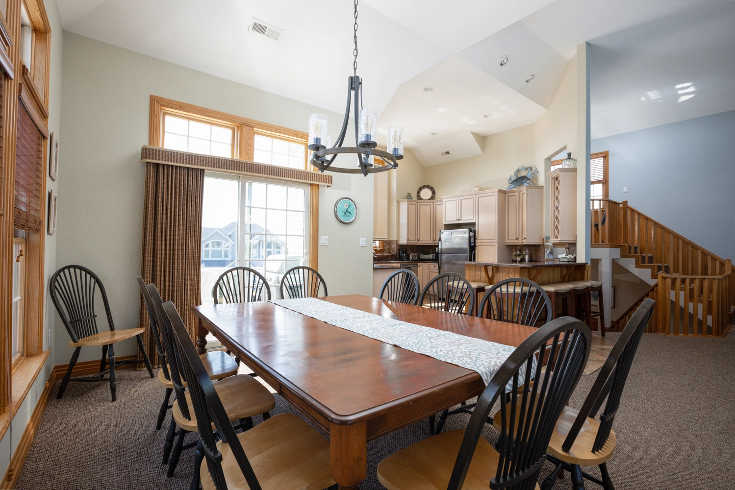 "Location to beach and walkway. Kitchen very well stocked. Two bunk rooms on the middle level. King beds in all other bedrooms. No pets. Home very clean"