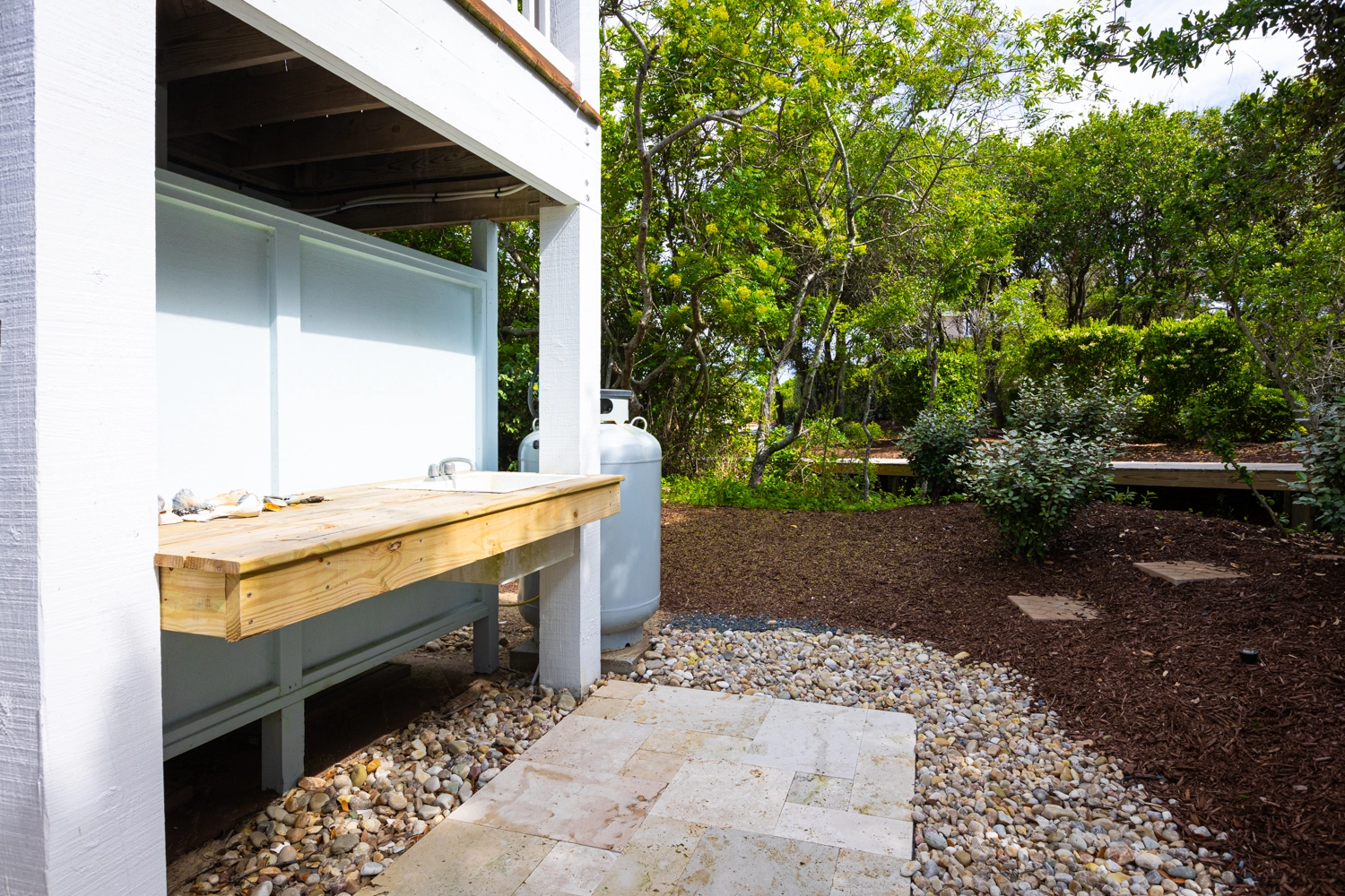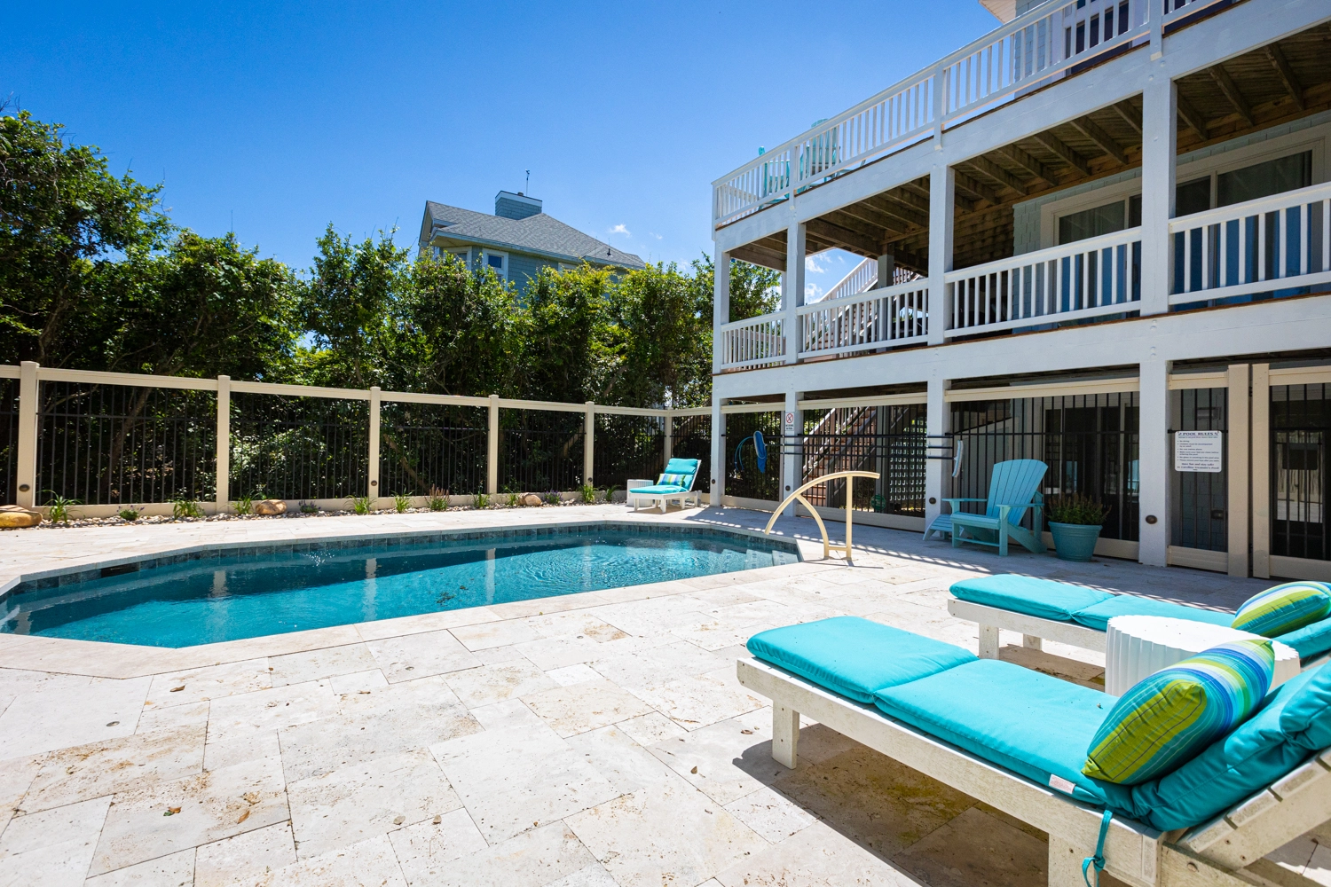 "THE perfect home for a family vacation. Well stocked kitchen, large bedrooms, beautiful deck, gas grill on top level, quick access to the beach, great pool area."
