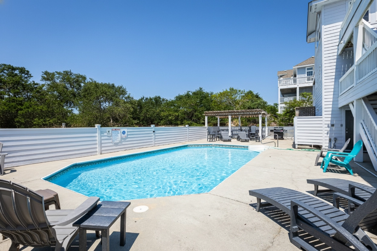 Private pool, hot tub, gas grill, basketball goal.