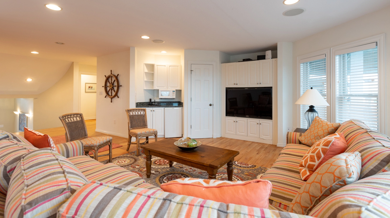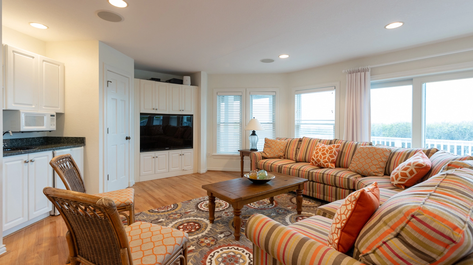 Oceanside, King, Queen Sleep Sofa, Standing shower, Whirlpool tub, Deck access