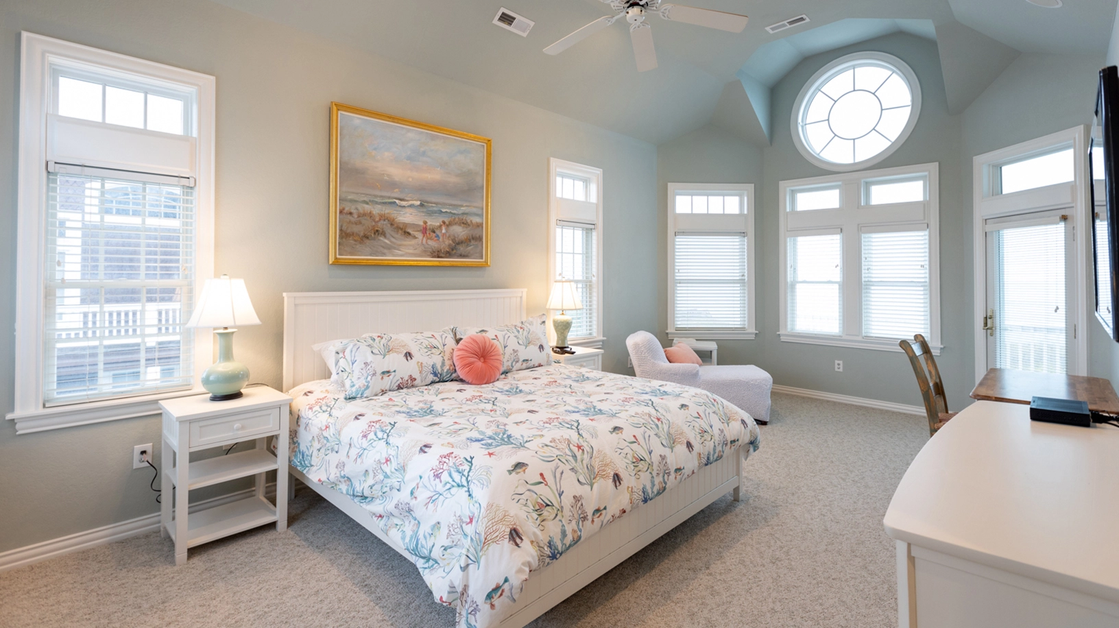 "5 king MBRs. Kitchen with updated appliances and higher quality cookware. Lots of deck space. Higher quality deck and pool furniture. Good quality and clean mattresses. Location on a part of beach that is only 1 house deep and no public beach access next to house. Lots of spaces in house for quiet time or smaller group activities. Full office with large desk and professional looking background for video calls."