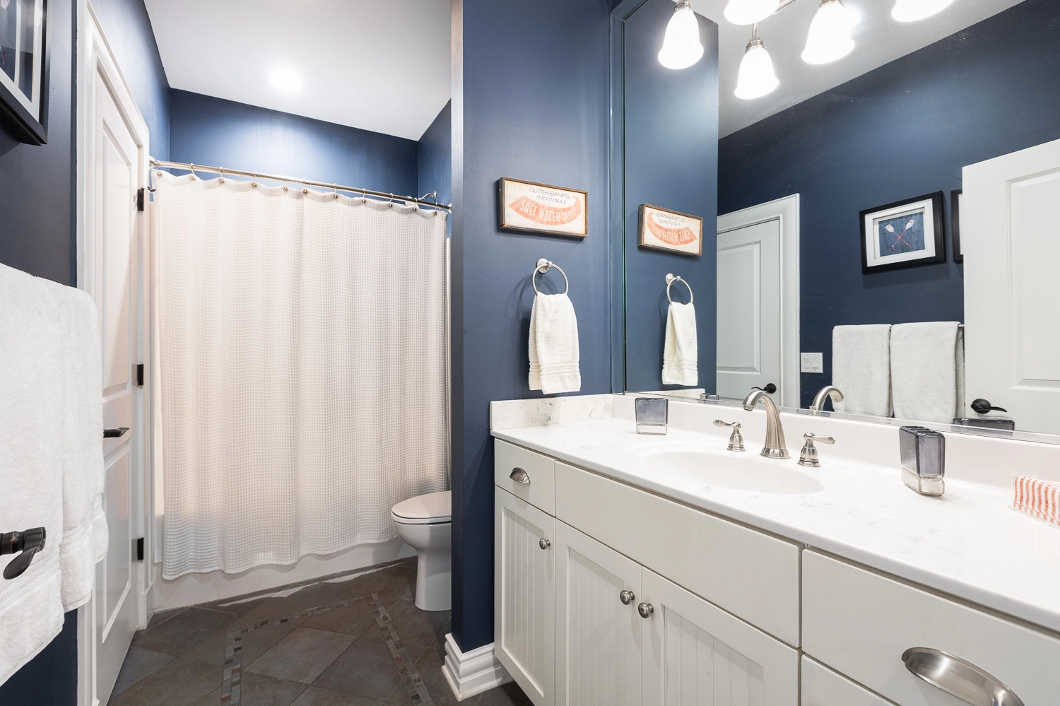 2 Bunk Sets, Semi-private bath, Shower/tub combo
