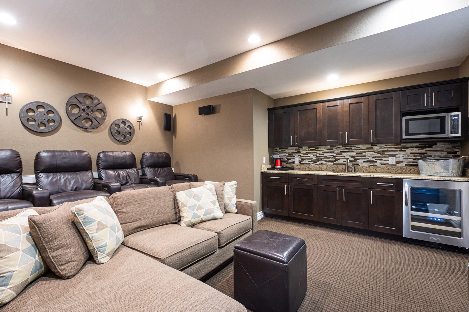 "All rooms were nicely decorated, spacious, and welcoming. The home was beautiful, kitchen well stocked, and had amazing views. Great sound system in the top level great room. Theatre room was a big plus."