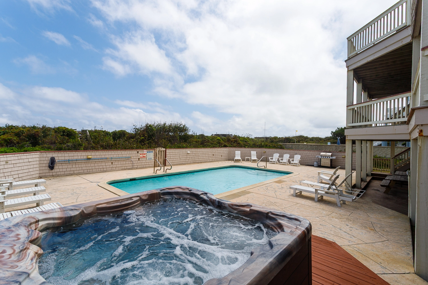 Private pool, hot tub, gas grill, community pool, and community tennis.