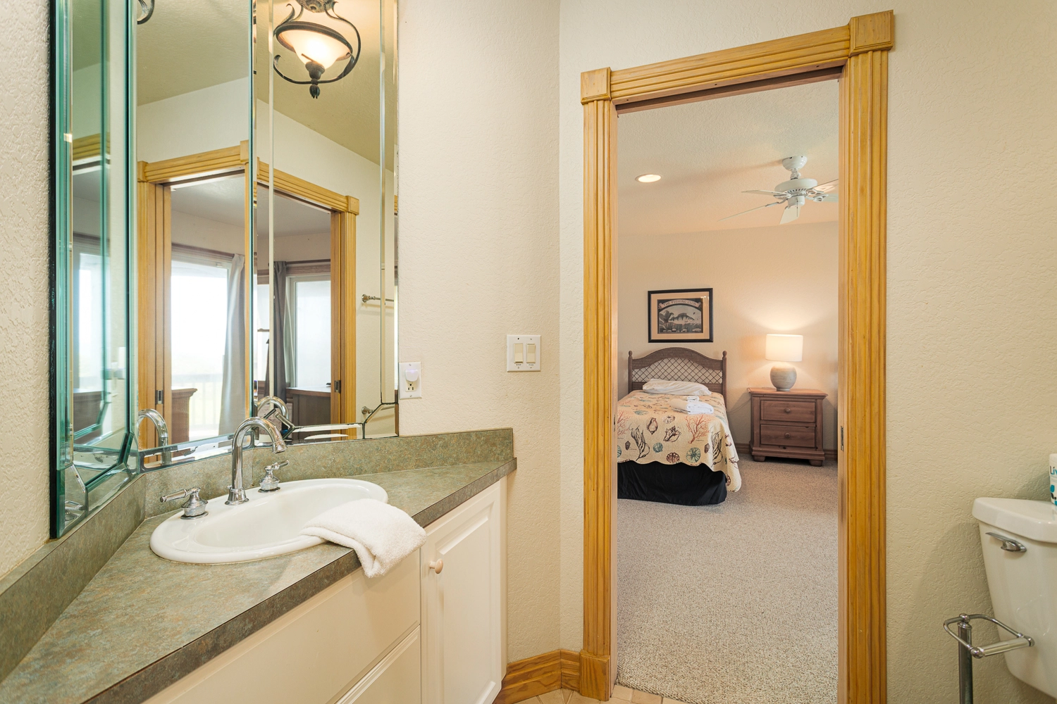 2 Twins, Shared bath with Room 1, Shower/tub combo, Deck access,