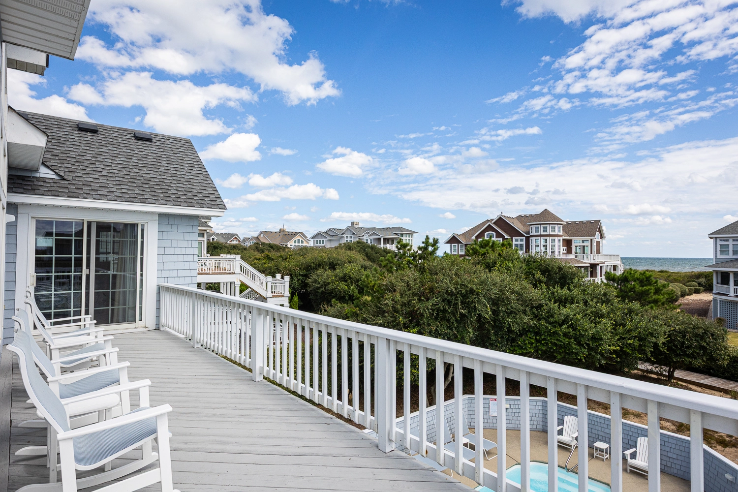 Stretching along three and a half miles of beach and expansive dunes just north of Duck, Pine Island borders the Pine Island Audobon Wildlife Refuge, which affords guests the unique opportunity to experience endless views of both the Currituck Sound and the Atlantic Ocean. Pine Island is one of the most well-liked vacation communities on the Outer Banks. This remarkable collection of extravagant oceanside vacation homes is settled along an uncrowded strip of beach in Corolla, providing vacationers a luxurious way to enjoy the Outer Banks and a comfortable atmosphere that allows for more undisturbed one-on-one time with nature and family. Beach access is convenient for all homes in Pine Island.