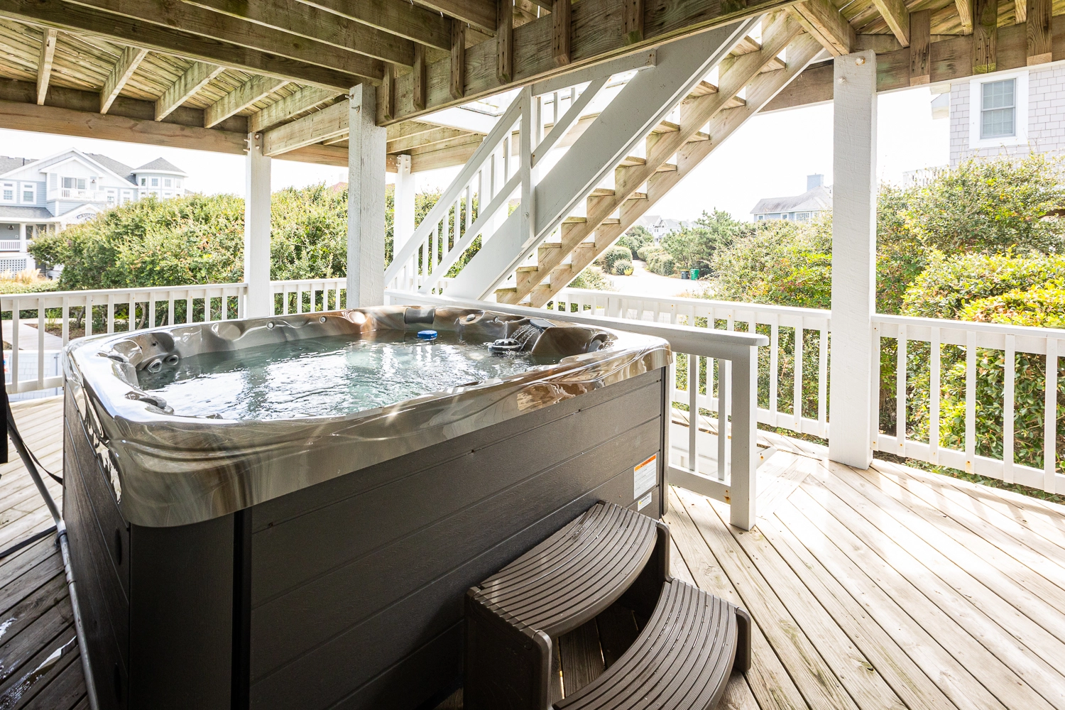 Den; direct deck access from all rooms; hot tub.