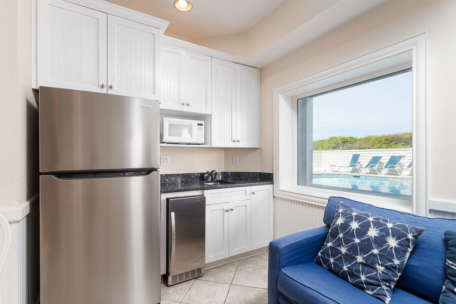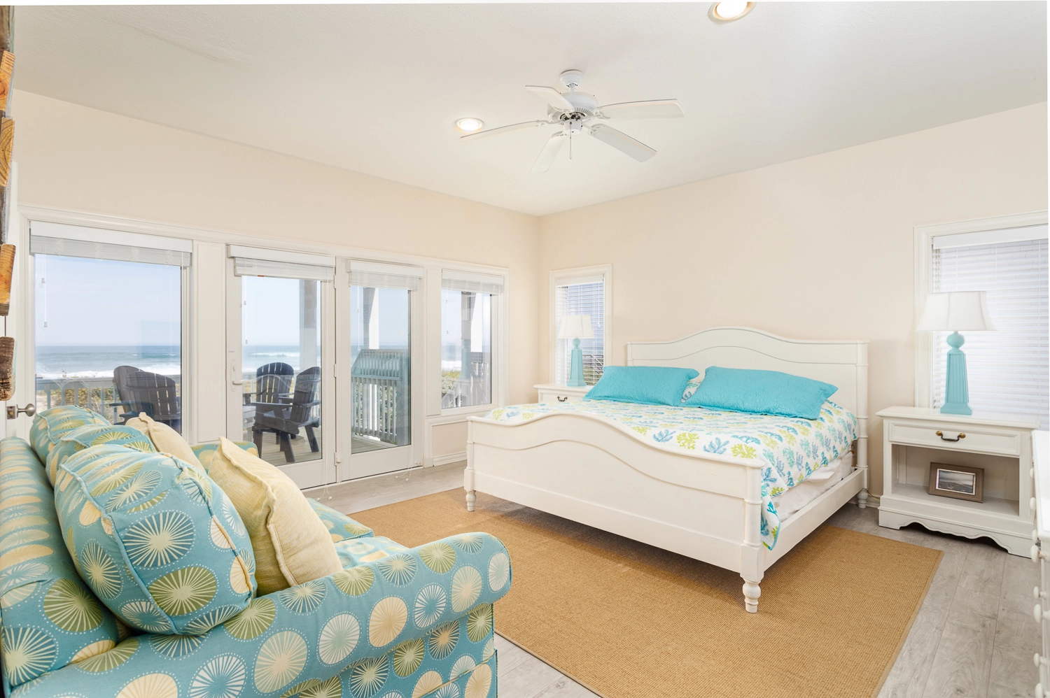 Oceanside, King, Walk-in shower with double showerheads, Whirlpool tub, Gas fireplace, Deck access
