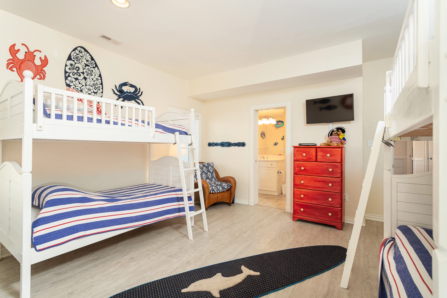 "Loved that all rooms had private bathrooms and king beds except for bunk room. Kitchen was very well stocked, there was nothing that we needed that it did not have. The upper deck chairs make it easy to see the view and are comfortable. 2 Great rooms furniture had ample seating and very comfortable. 2 ice makers are also a great plus."